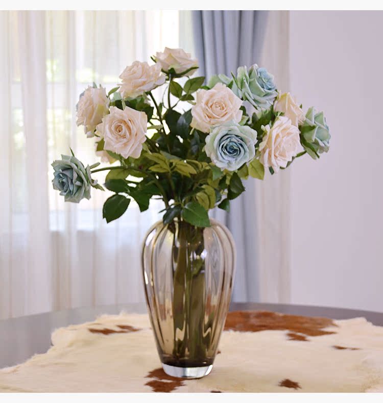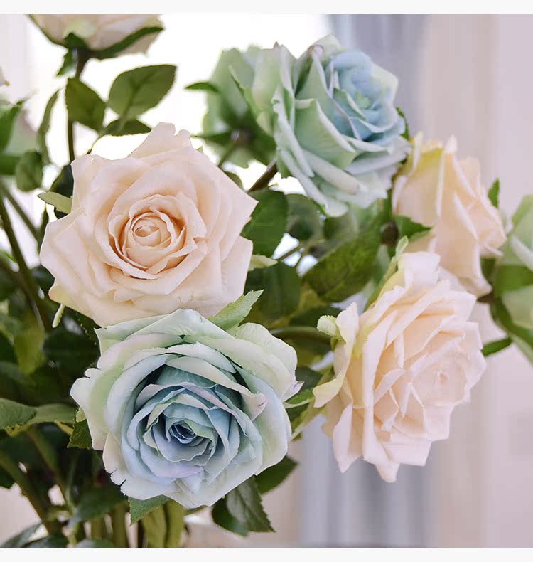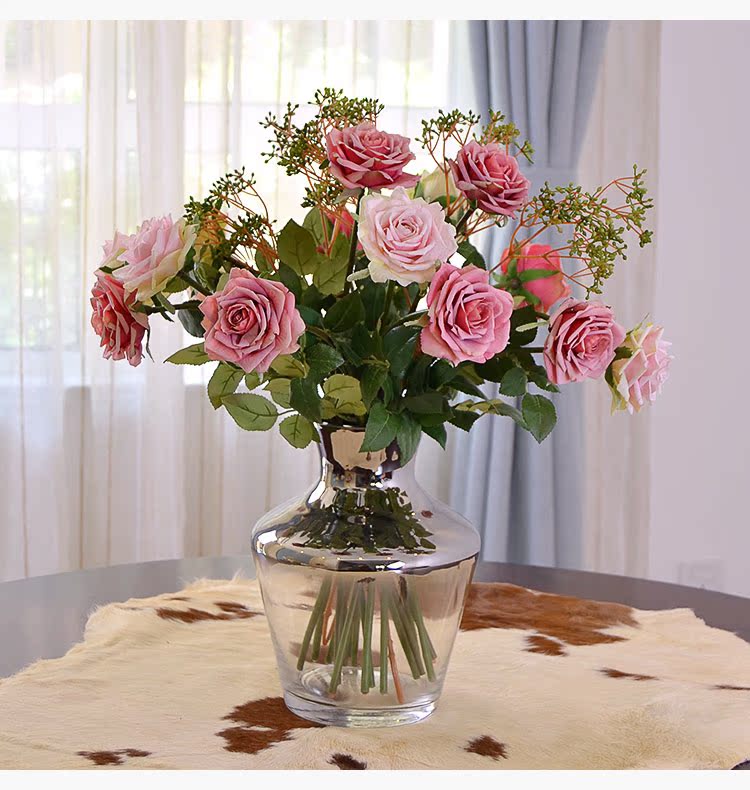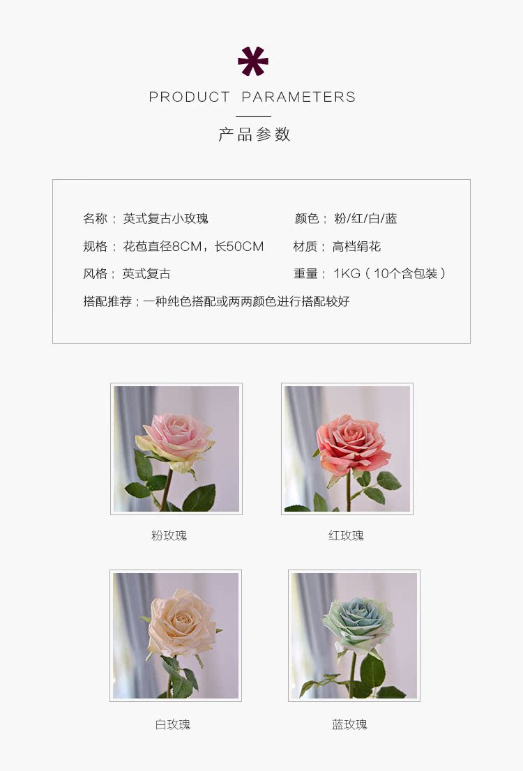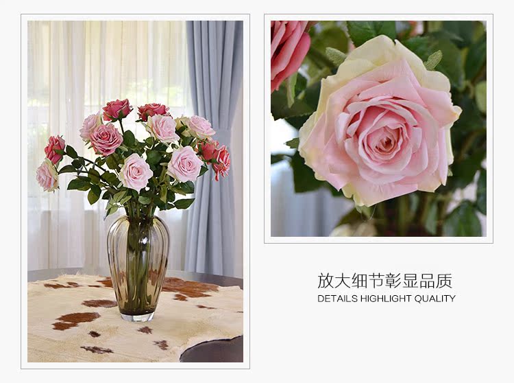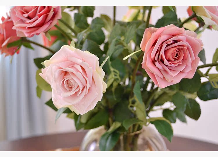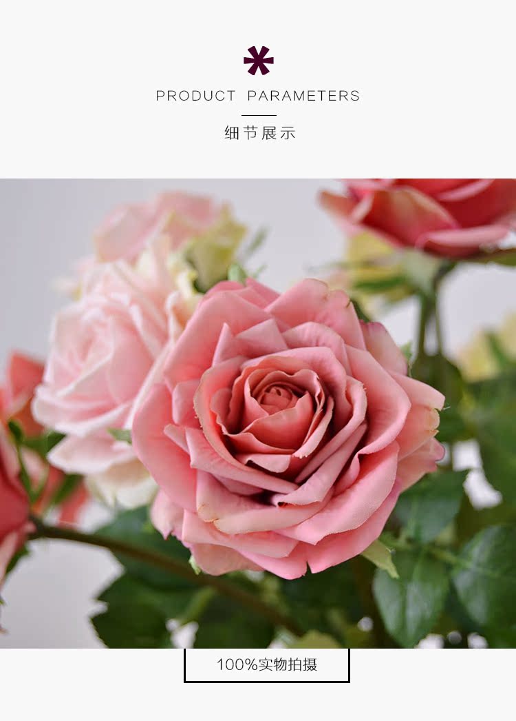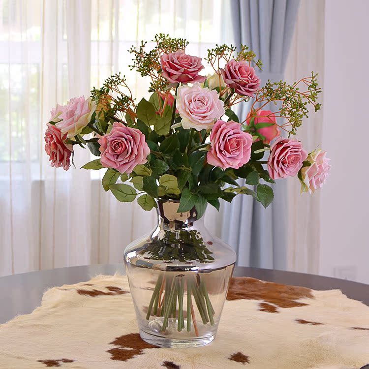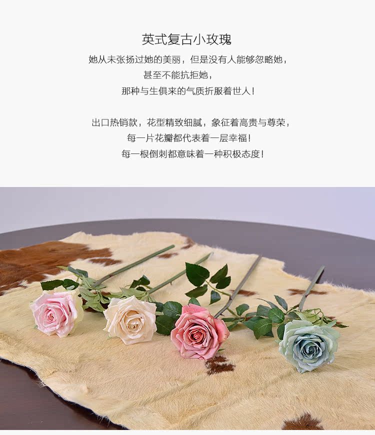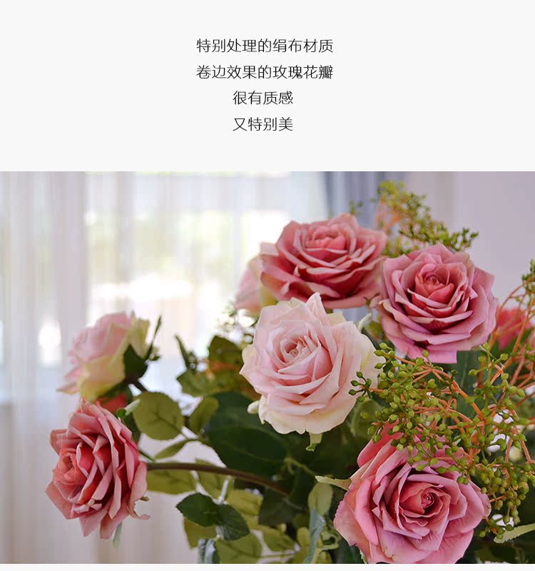 粉玫瑰(單枝)英式復古小玫瑰仿真花絹花假花套裝 簡約美式家居客廳裝飾擺件