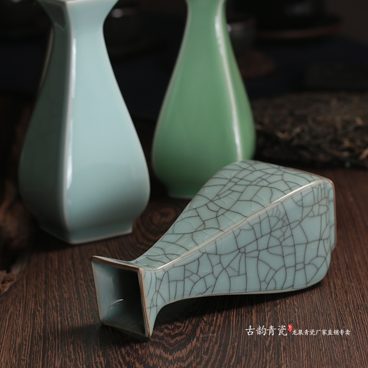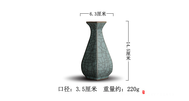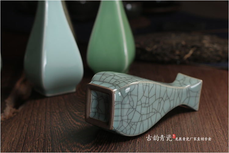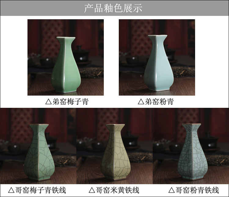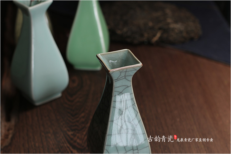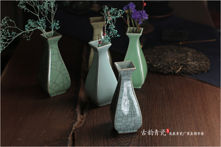 哥窯梅子青鐵線創意四方花瓶青瓷擺件干花個性時尚小花器家居裝飾品水培花插陶瓷