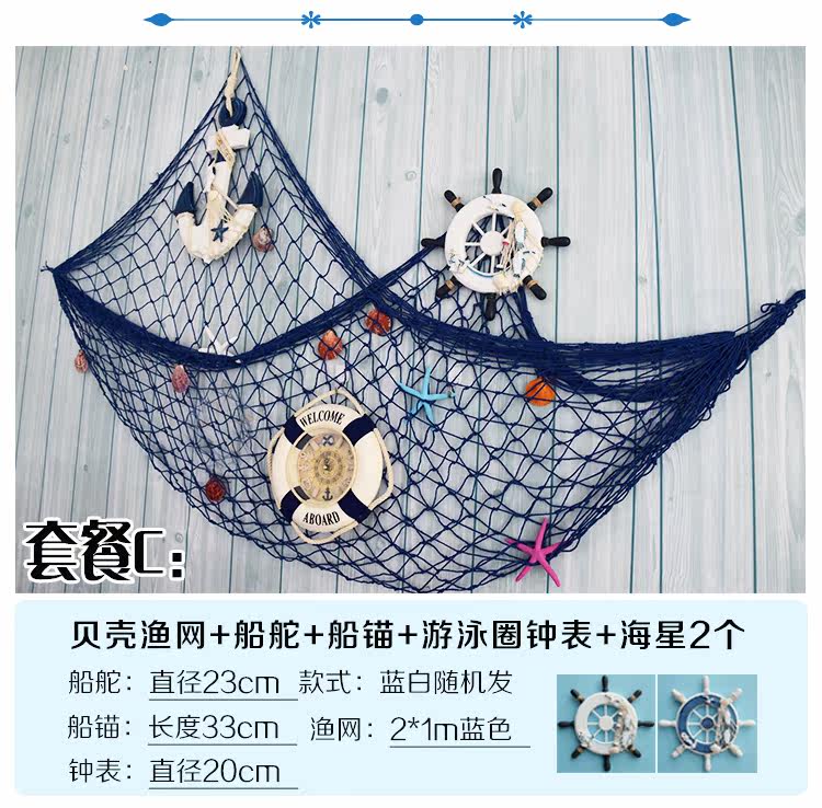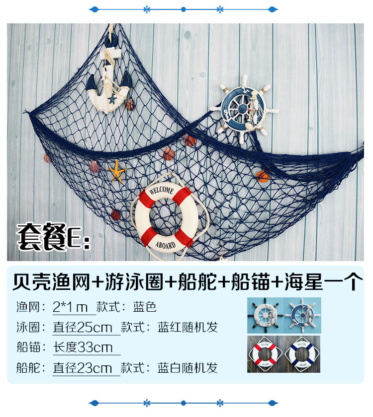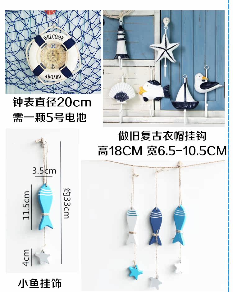 紅色游泳圈鐘表(直徑20cm)宿舍裝扮咖啡廳房間墻壁掛件船錨魚網地中海粗線裝飾漁網船舵壁飾