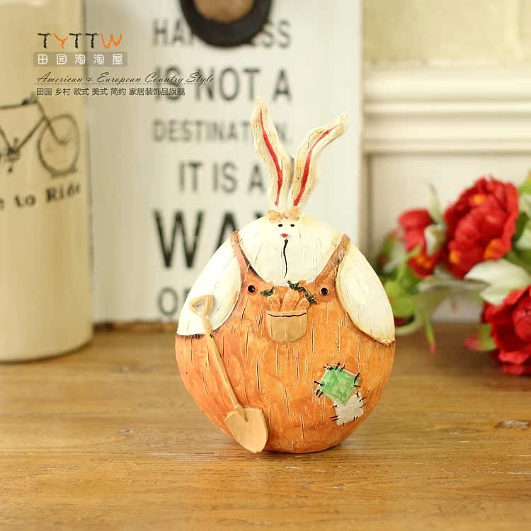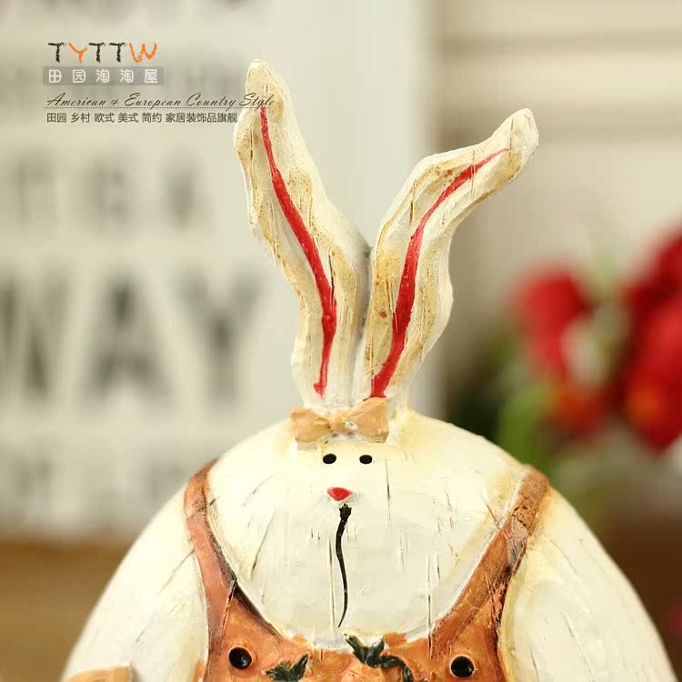 本公司大部分商品6一10天到貨。不接急單。急單的客戶請不要下單。感謝諒解與合作!歐式田園風格家居客廳裝飾彩繪鄉村兔子動物裝飾擺件陳列道具很有歐美范的樹脂擺件,像是兩個來自農村種地的兔子一樣樸實,他們自給自足,生活雖清貧,但很開心,象征著自己的家園要靠自己勤勞的雙手來創造 尺寸:單個高21CM 寬13CM 材質:樹脂 顏色:藍色 橘色 田園淘淘屋正版! ---------------------------------------------------------------------------------------- tips:寶貝表面為仿木紋工藝,純手工鄉村風格,漆面等非精細,愛挑刺的MM以及不懂此風格的MM請放棄TA們,謝謝!
