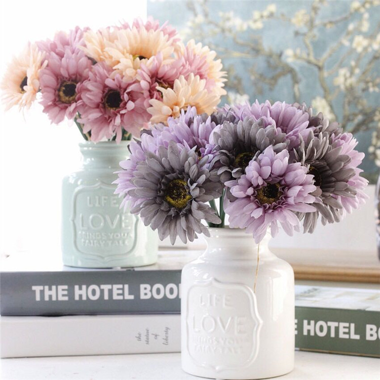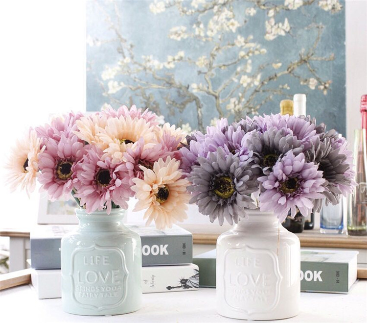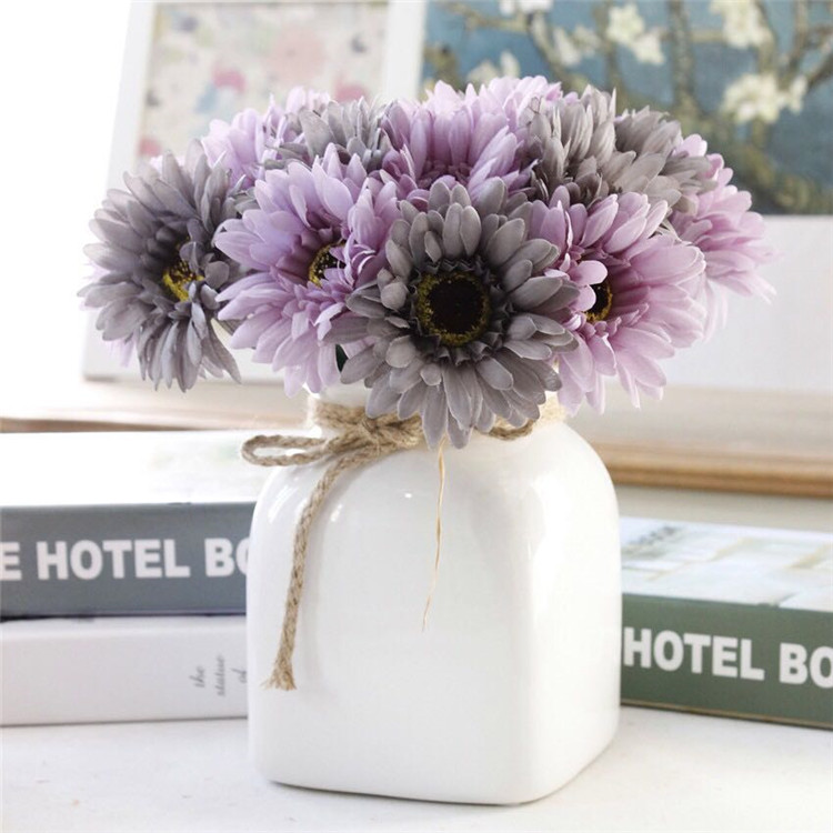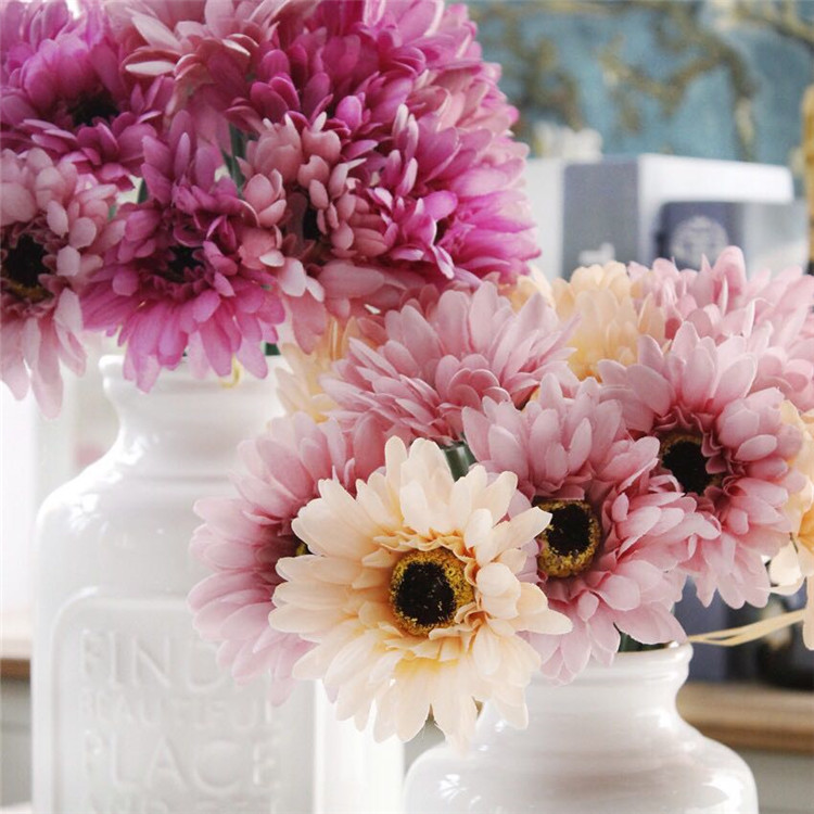 非洲菊拉菲束-玫紫雙色仿真花非洲菊 拉菲束扶朗花菊花太陽花紅色雛菊花瓶家居擺設擺件