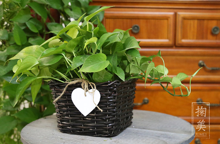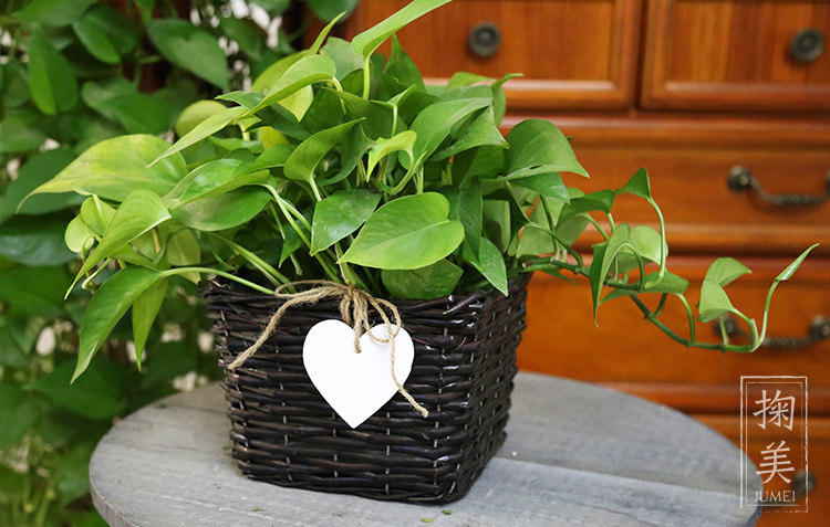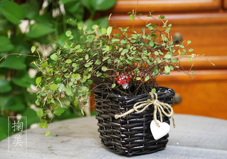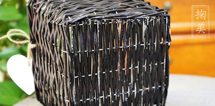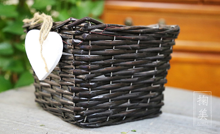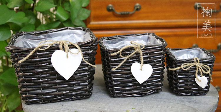 咖啡色小方形帶白心裝飾柳編花盆深色大中小號花器多肉綠植花籃掬美田園
