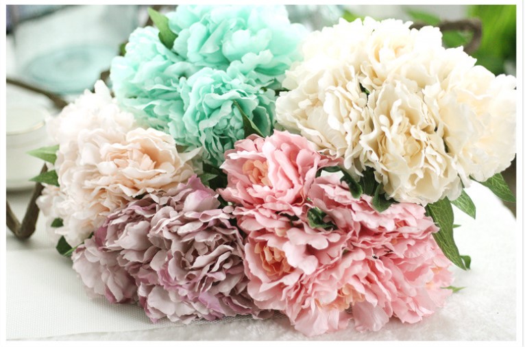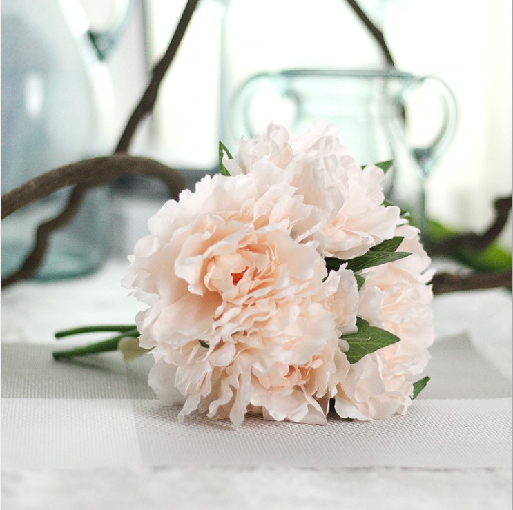 牡丹蒂芙尼藍-雅白色韓版牡丹蒂芙尼藍仿真花假花婚慶新娘手捧花束插花 花卉藝術擺件