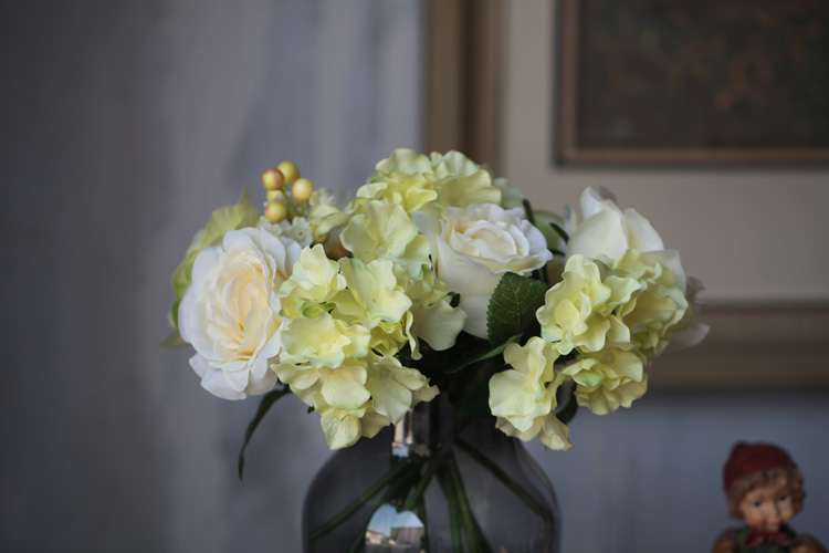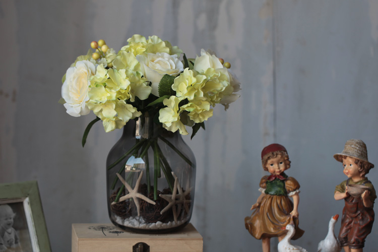 溫馨tips: 仿真花類可根據花瓶高矮大小進行修剪或墊填充物進行搭配。花枝可彎曲以達到飽蓬散效果。為少異味大部分仿真花盡量少用或者不用膠粘,花頭或者葉子采取手工插制,如有掉落插回去即可。