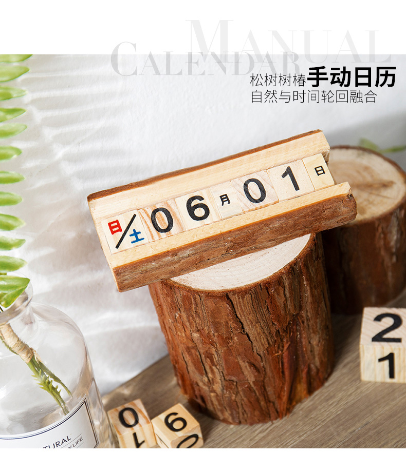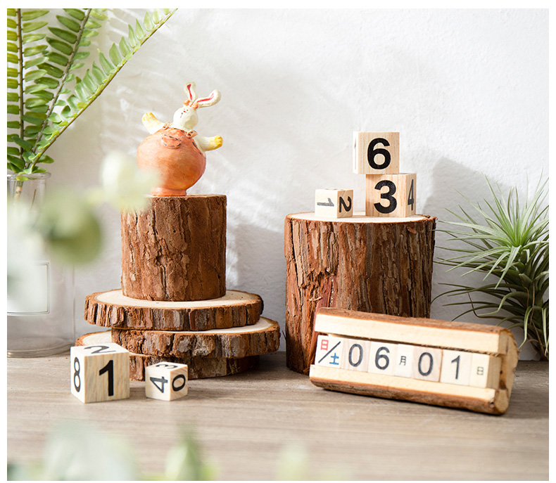 大號木樁創意原木日歷擺件桌面裝飾品奶茶店咖啡工藝品木質擺設