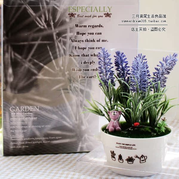 大號/高17cm/精油味道隨機三月鳶尾 可愛田園日韓清新薰衣草仿真植物微景觀香薰擺件