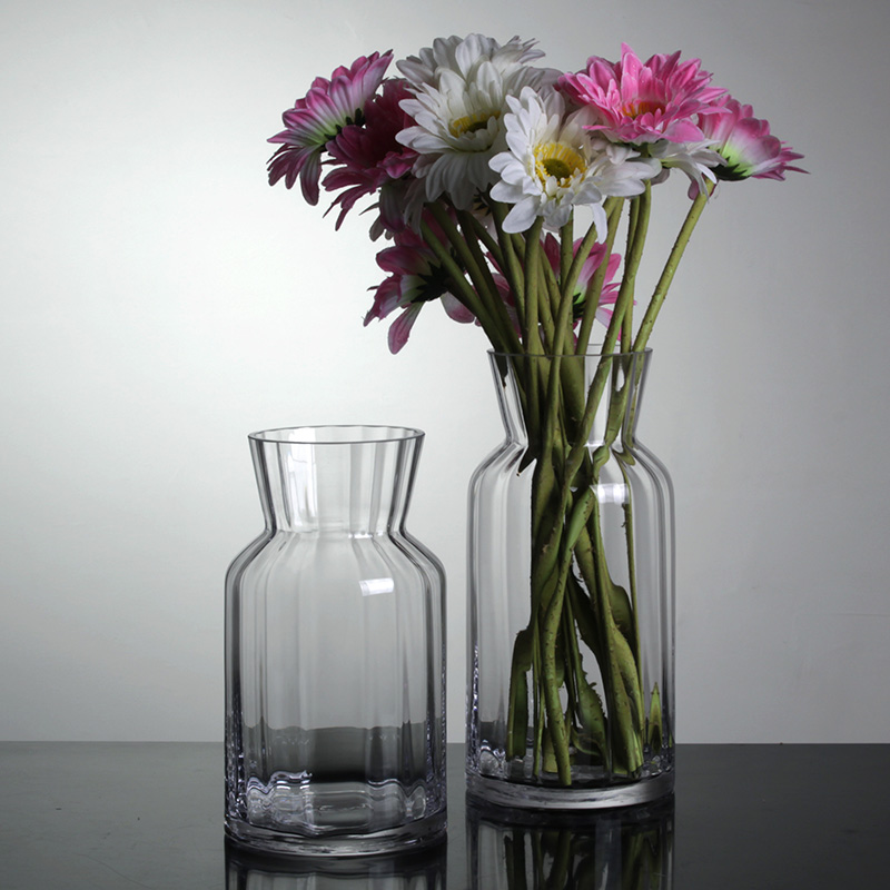 kaheku克利策歐洲復古棱紋創意手工藝品透明玻璃花瓶家居裝飾擺件