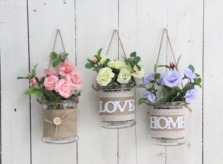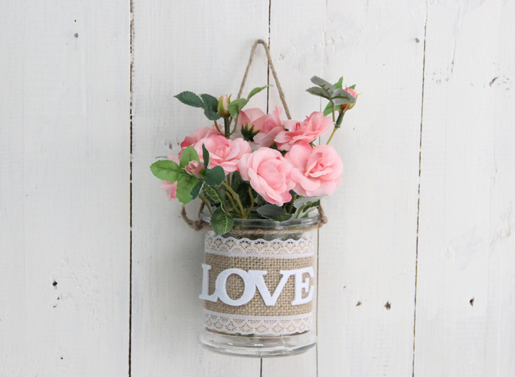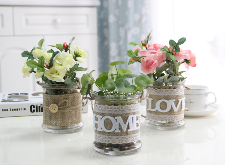 【寶貝材質】玻璃花瓶麻繩絹布花藝