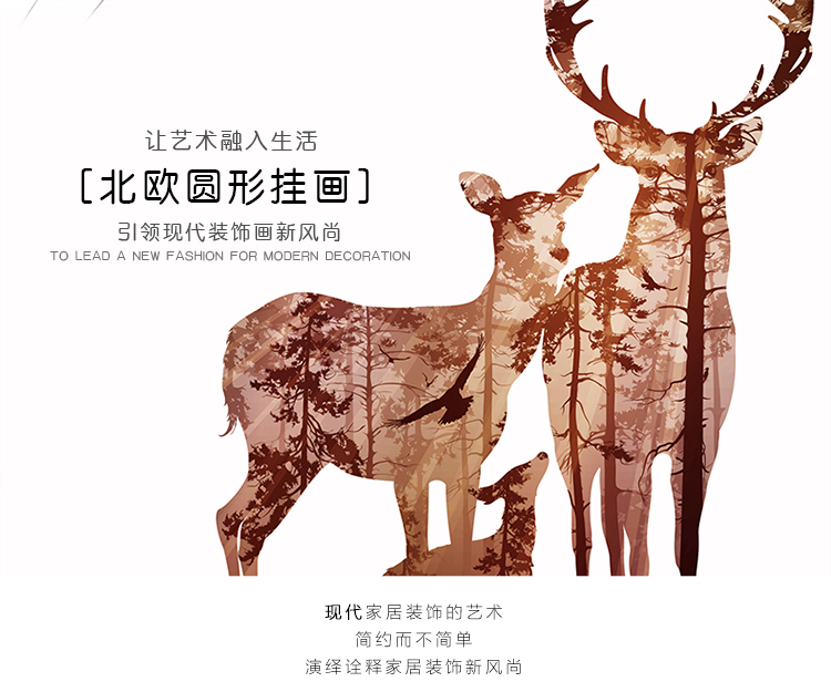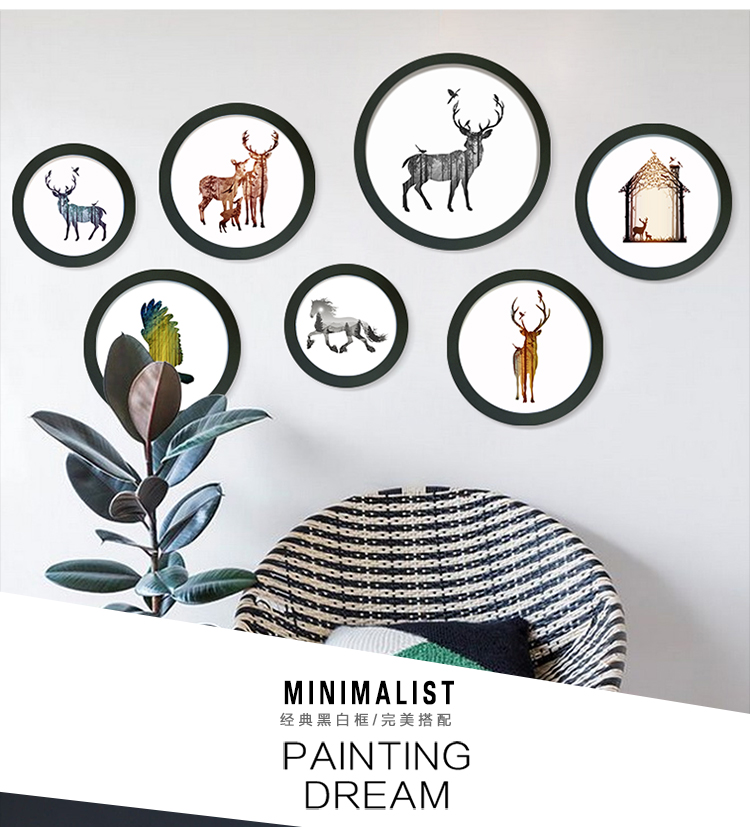 KT613320mm厚板白色框中號 直徑24CM美式客廳沙發背景墻裝飾畫歐式臥室壁畫掛畫餐廳玄關墻畫現代簡約