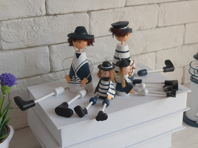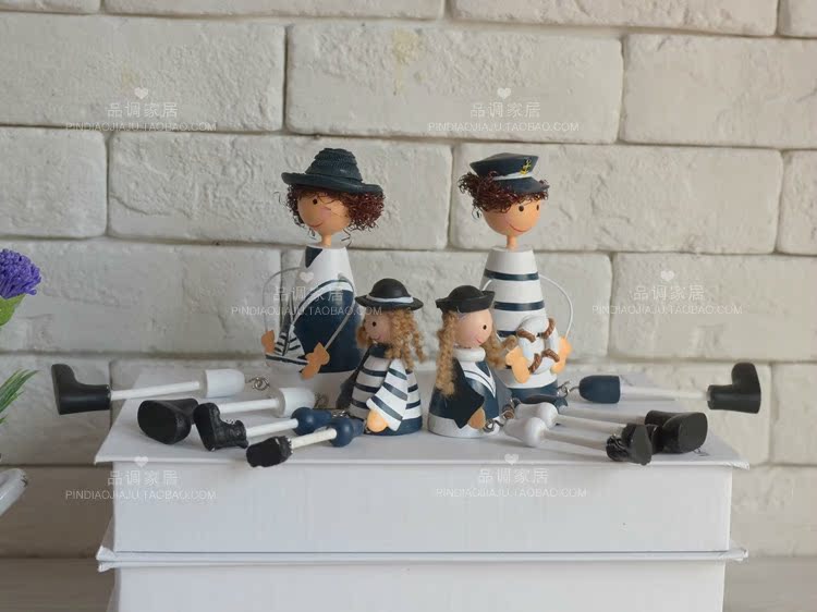 | 本公司大部分商品6一10天到貨。不接急單。急單的客戶請不要下單。感謝諒解與合作! 【寶貝名稱】地中海風格擺件 海軍一家 吊腳娃娃 海洋風裝飾品 隔板裝飾 禮品 【規格】大號:坐高13cm,腿長8.5cm,寬5.5cm.小號:坐高6.7cm,腿長7cm,寬4.5cm. 【材質】主體為木質,部分配件為鐵質,樹脂... 【重量】小號一對80G 大號一對280G 【使用空間】客廳電視背景墻,沙發背景墻裝飾,走廊過道,酒吧,咖啡廳裝飾。精美禮品,寓意美好。 【寶貝說明】由于產品定位地中海風格,有故意做舊地方,木紋顯露,莫認為是做工問題,若接受不了此風格做工,請慎重購買!飾品大部分為批量生產的木制品,極個別難免有微小,不屬于品質問題。時我們會嚴格檢查品質,盡量避免的出現。