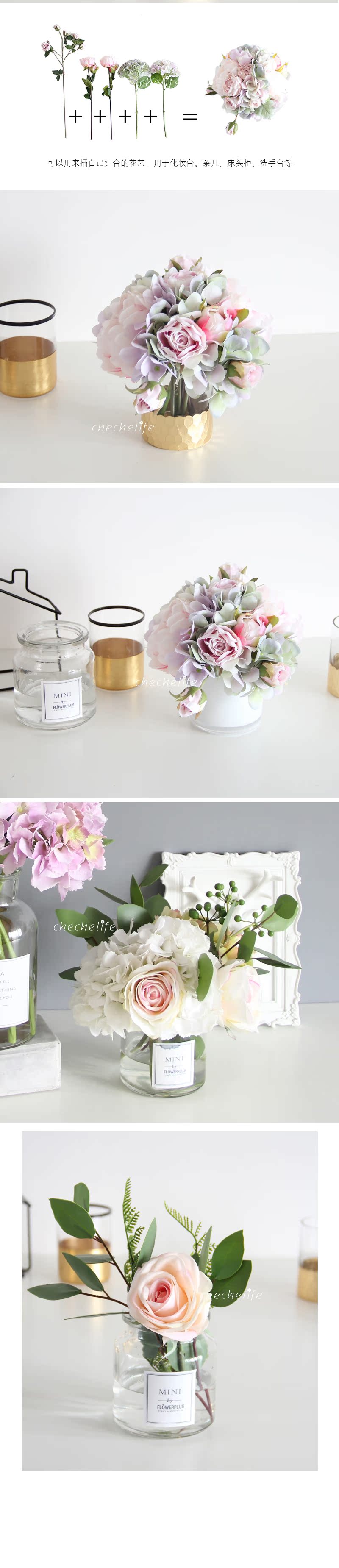 A款簡約白玻璃瓶北歐風格小花盆黃銅花瓶鍍金花瓶家居室內公室客廳裝飾假花盆栽