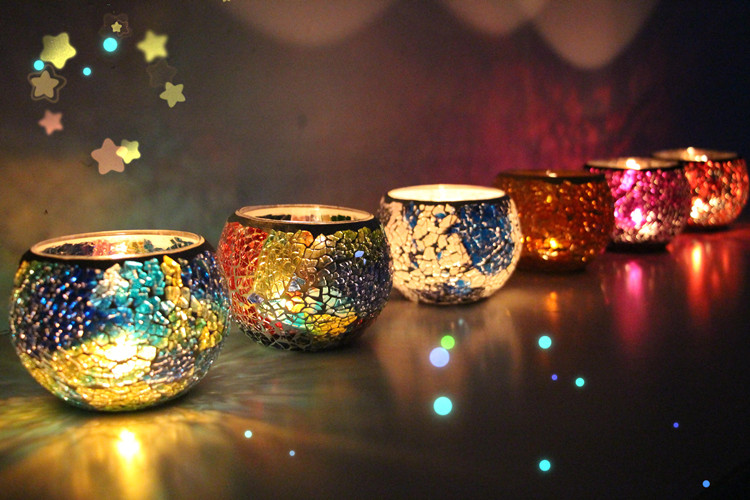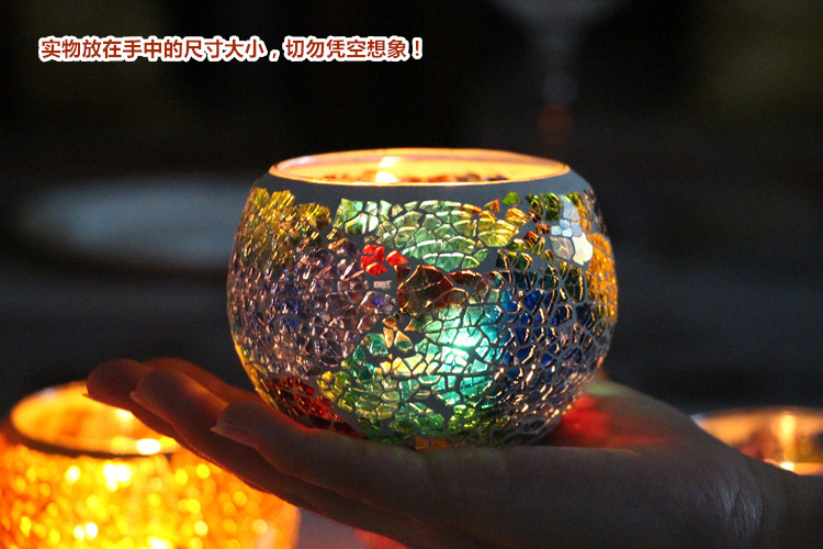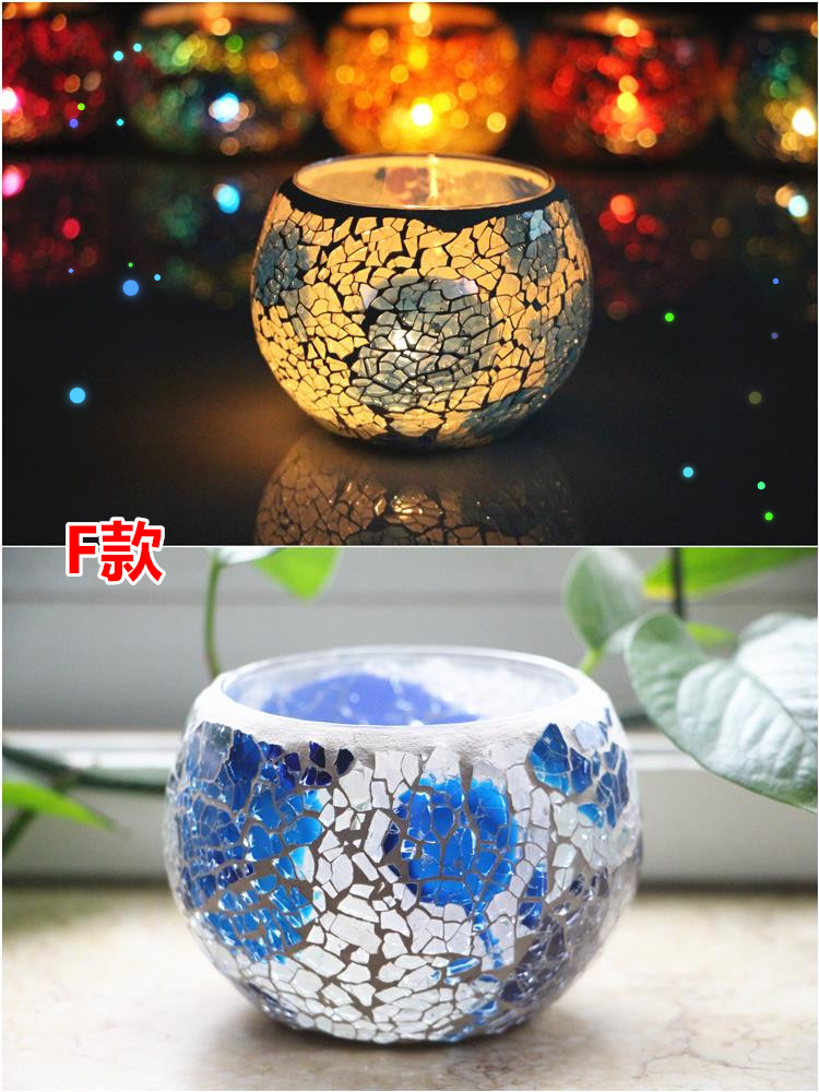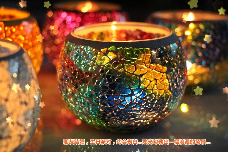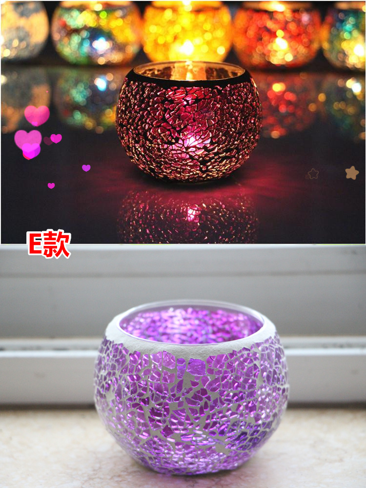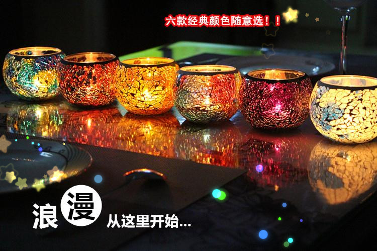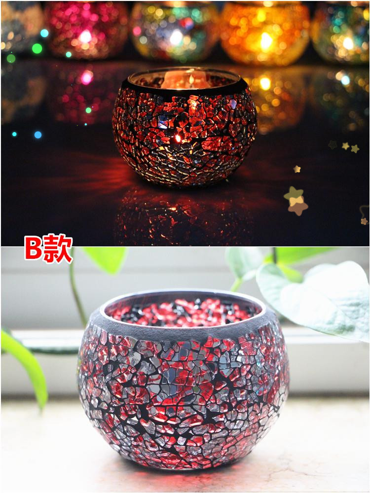 A款餐桌擺件蠟燭浪漫求婚馬賽克玻璃燭臺婚慶酒吧裝飾品婚房布置道具