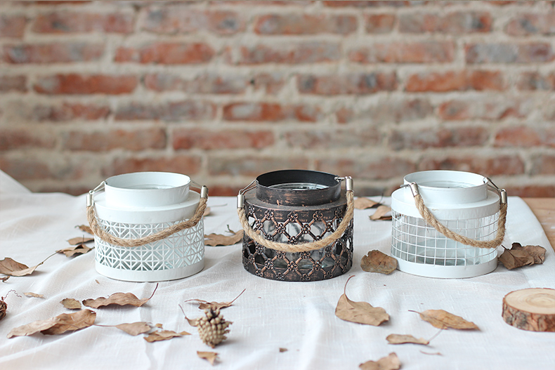 A款網格13.5cm*12cm復古懷舊田園燈籠燭臺 燈具裝飾燈庭院花園手工花器擺件家居