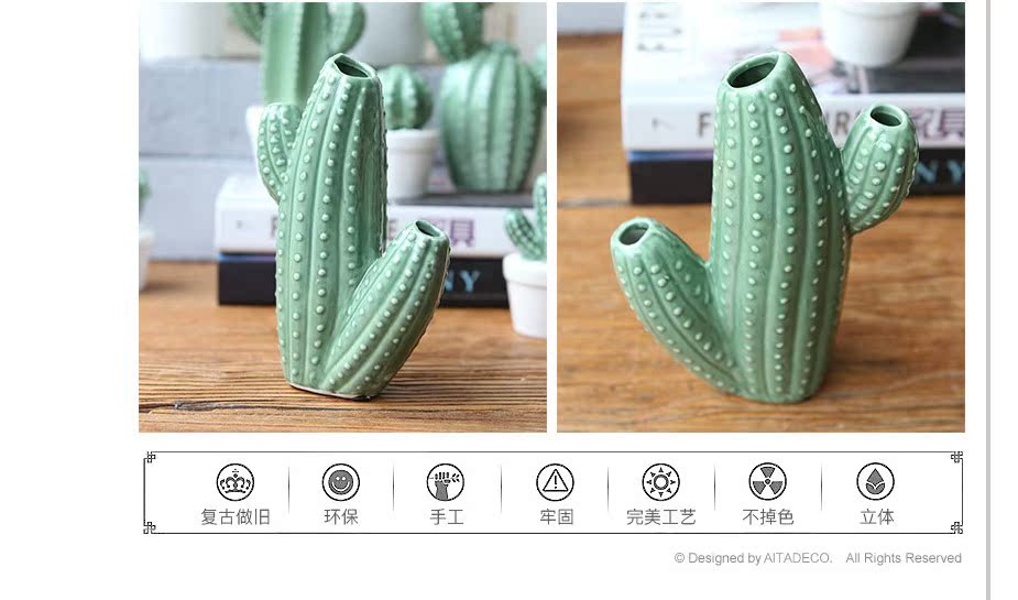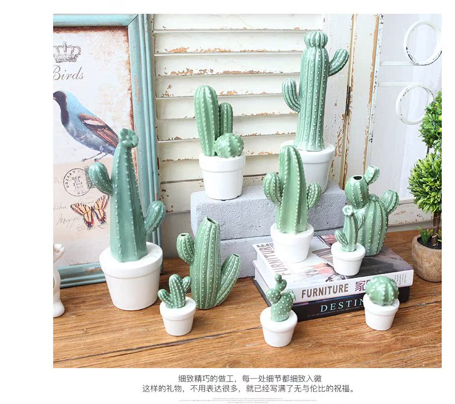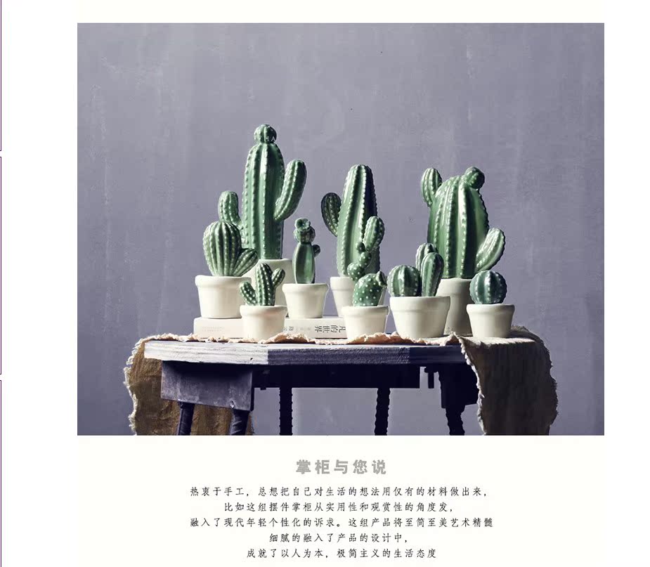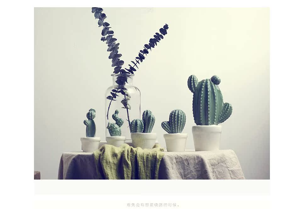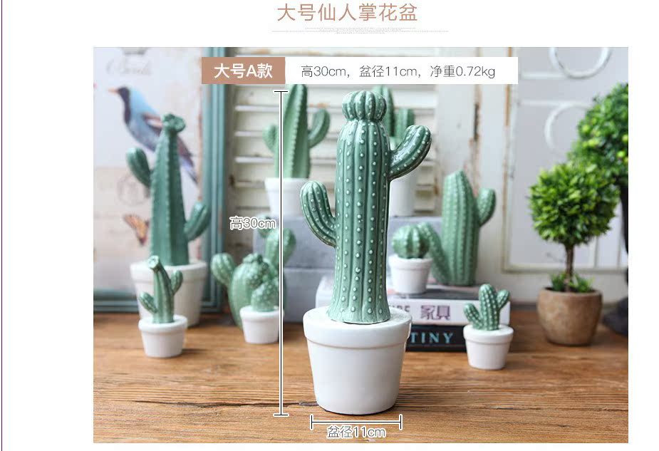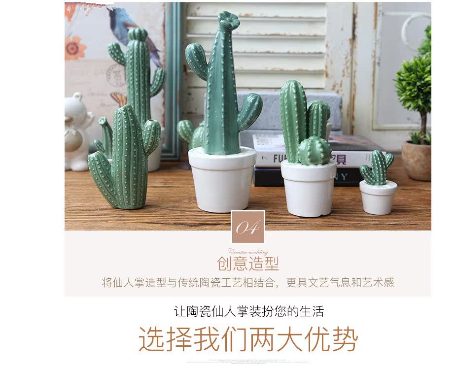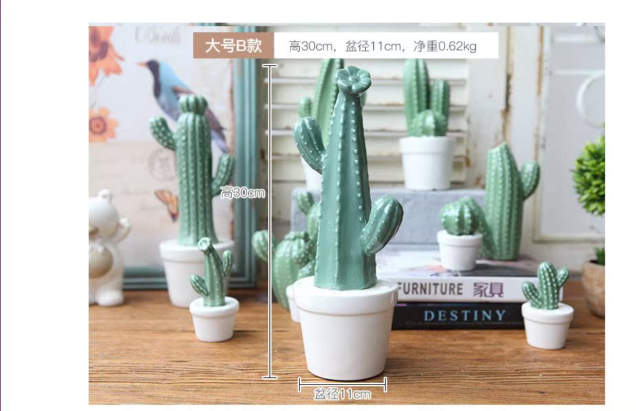 A款新品 北歐家居裝飾仙人掌擺件仿真植物盆栽客廳書房陶瓷創意擺件