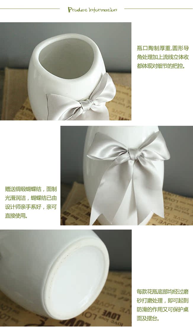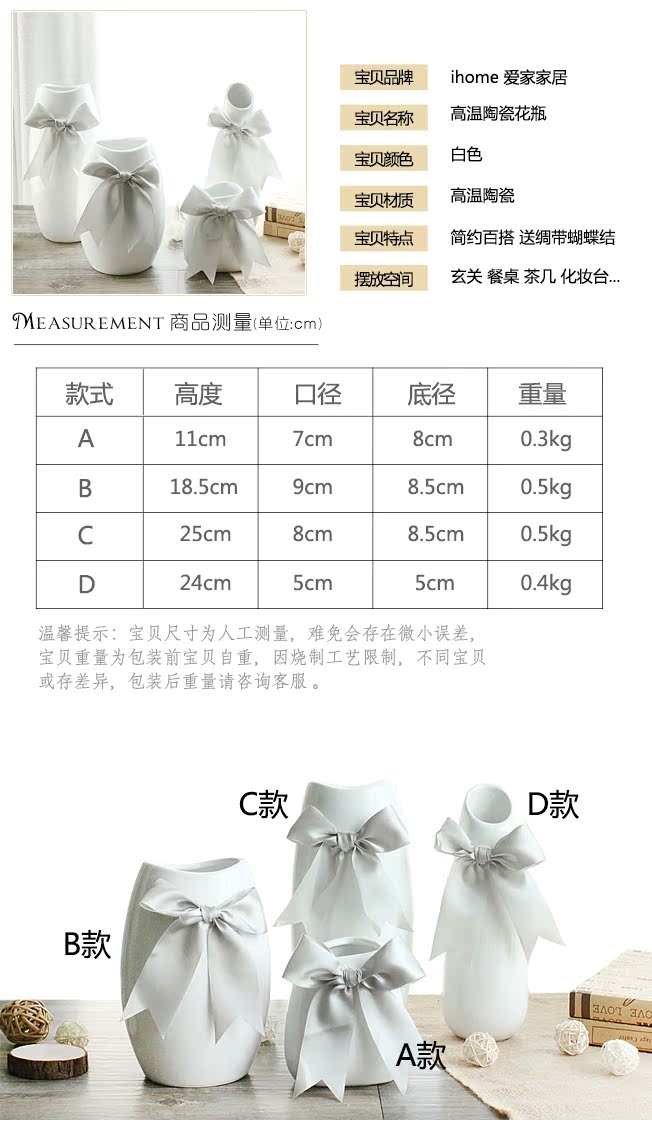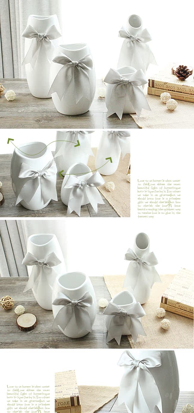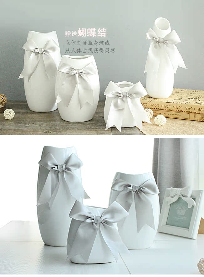 A款送蝴蝶結愛家陶瓷創意時尚白色花瓶現代簡約瓷器客廳擺件家居飾干花器插花