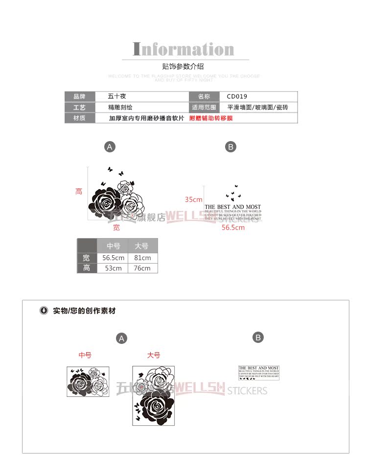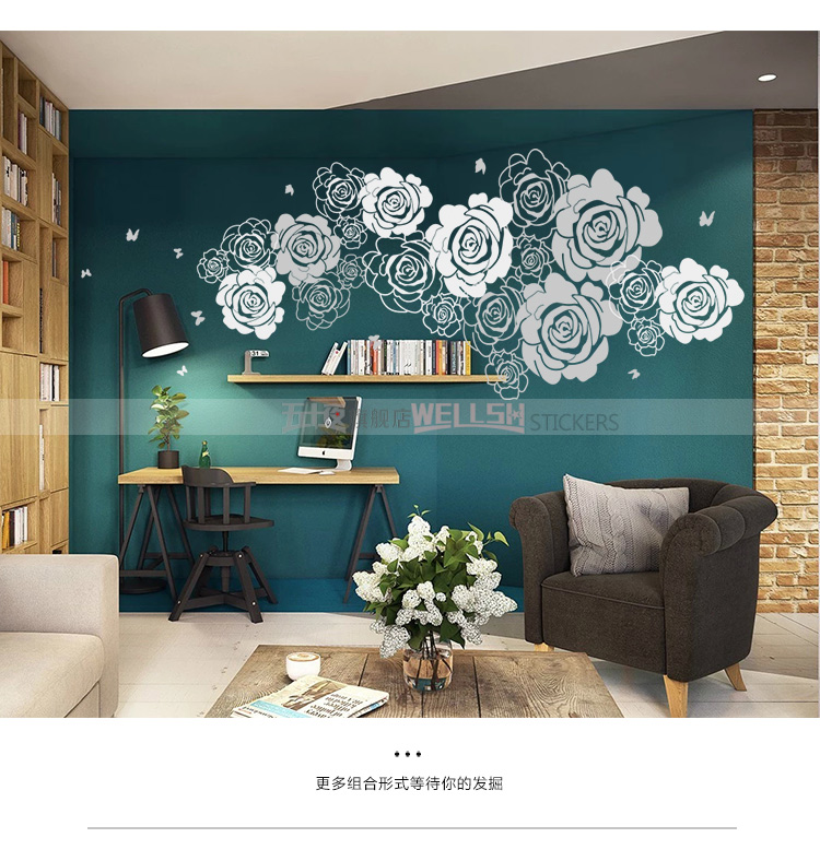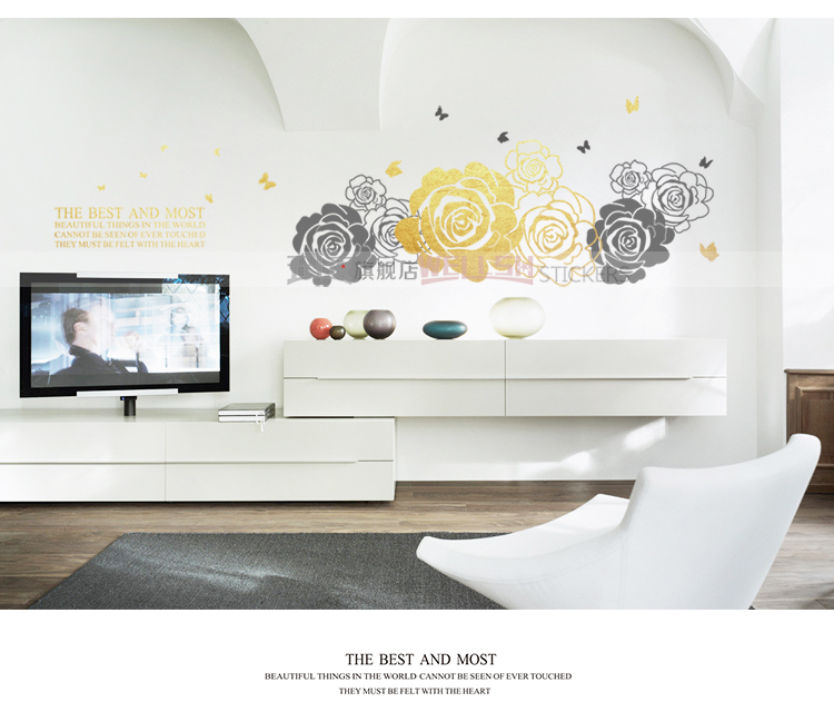 A款 白色中簡約優雅花朵壁紙自粘 臥室溫馨床頭貼畫客廳電視背景強裝飾墻貼