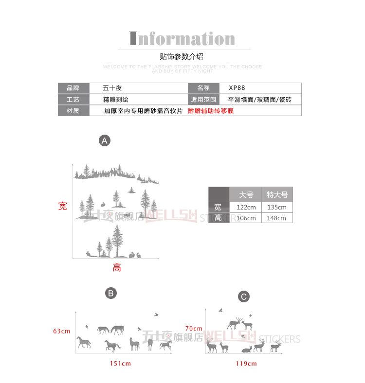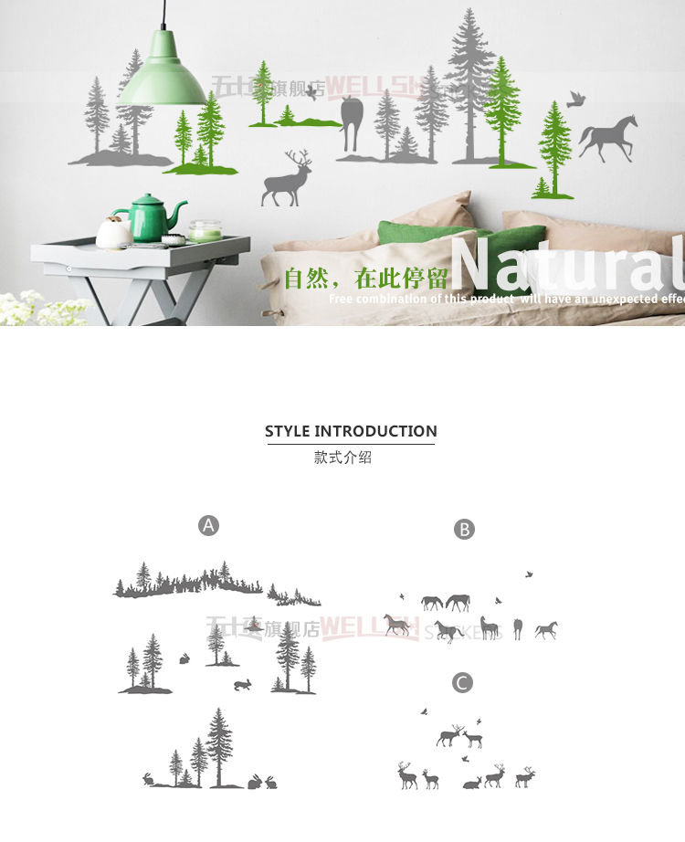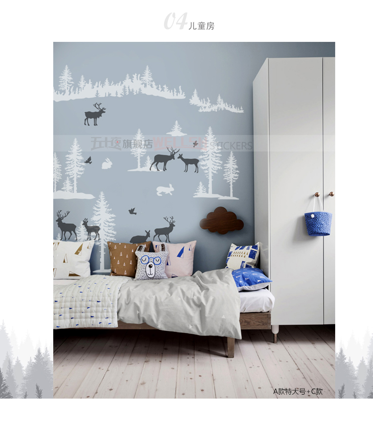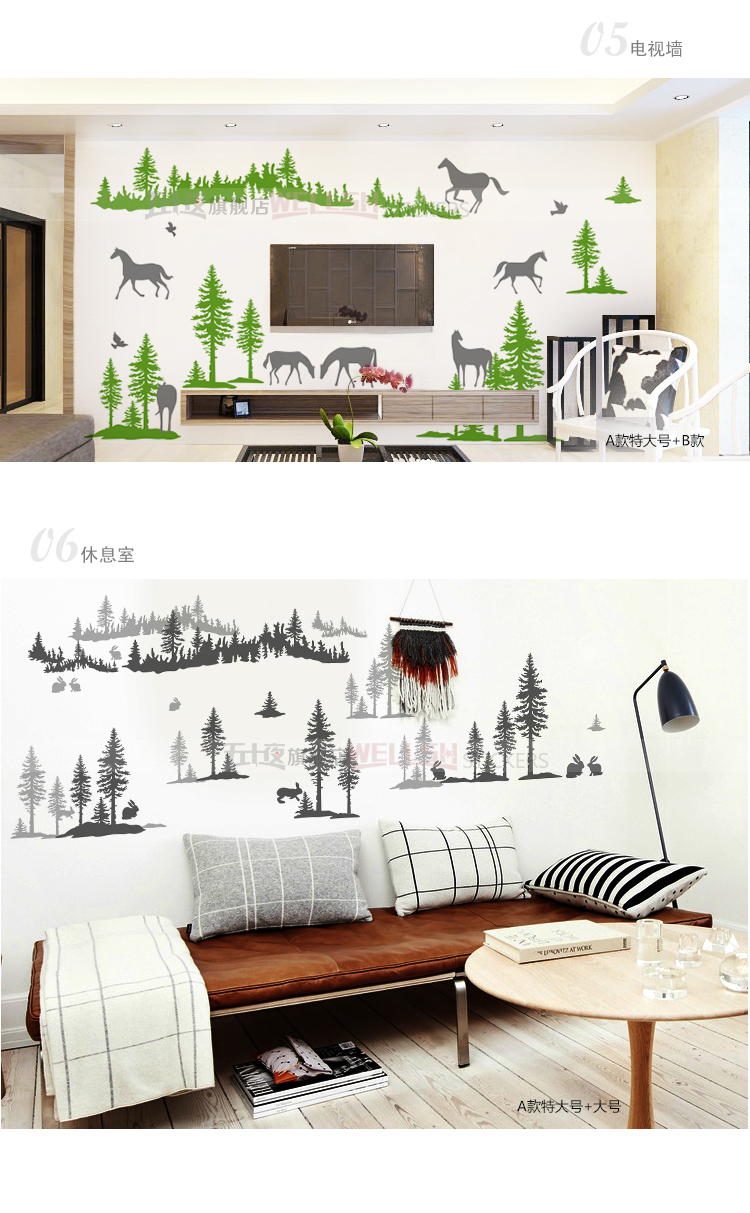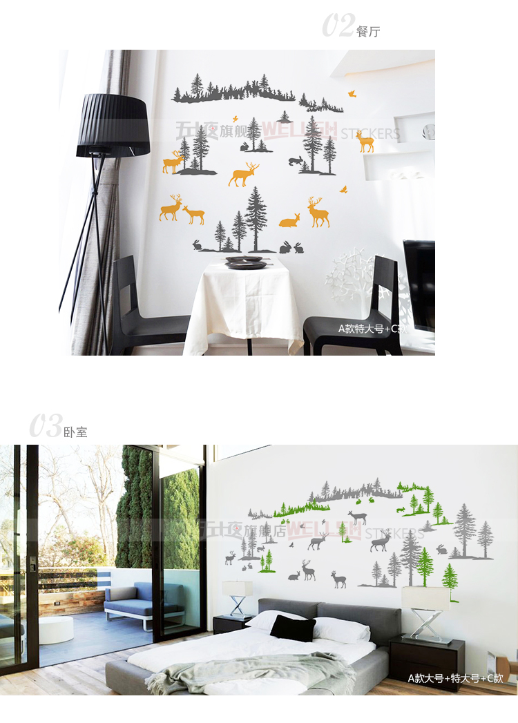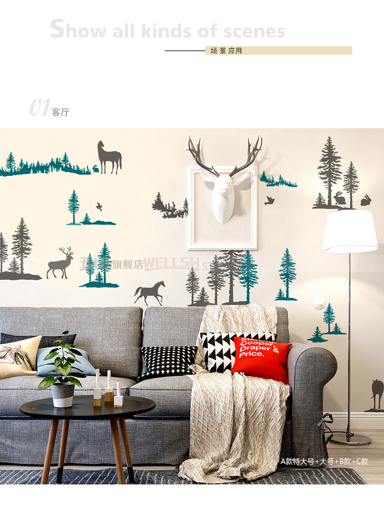 A款 鮮綠大臥室墻貼 溫馨樹林動物房間裝飾品貼畫客廳玄關電視墻壁畫貼紙