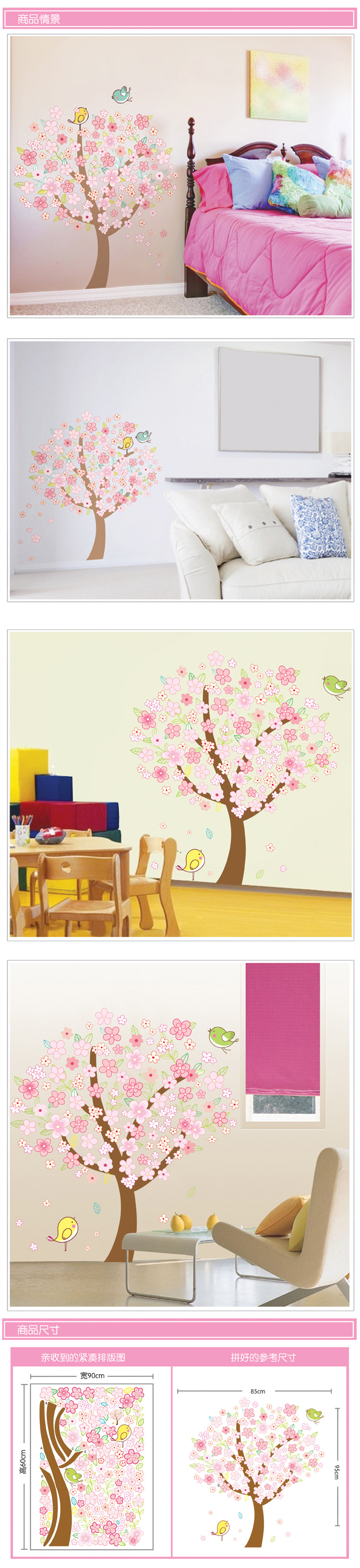 A版桃花樹特大創意墻壁貼紙臥室床頭墻面裝飾 桃花樹 浪漫客廳貼畫墻貼紙背景墻