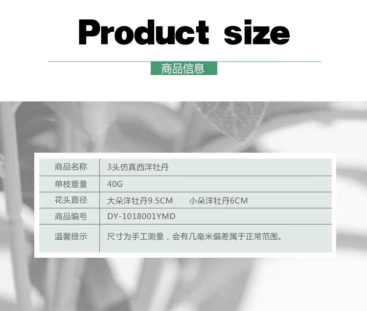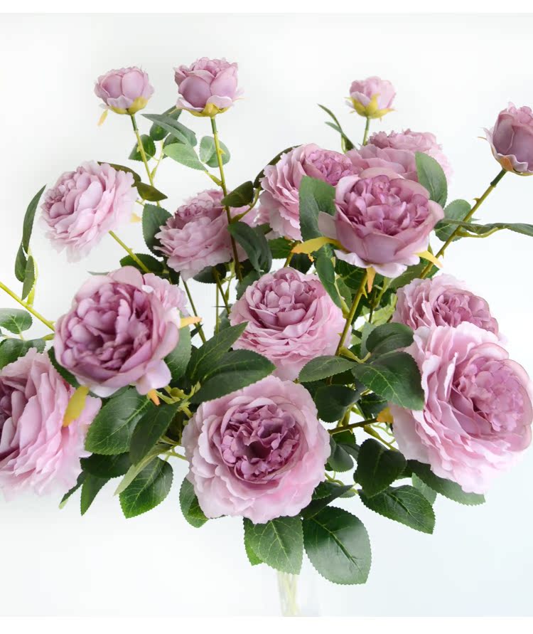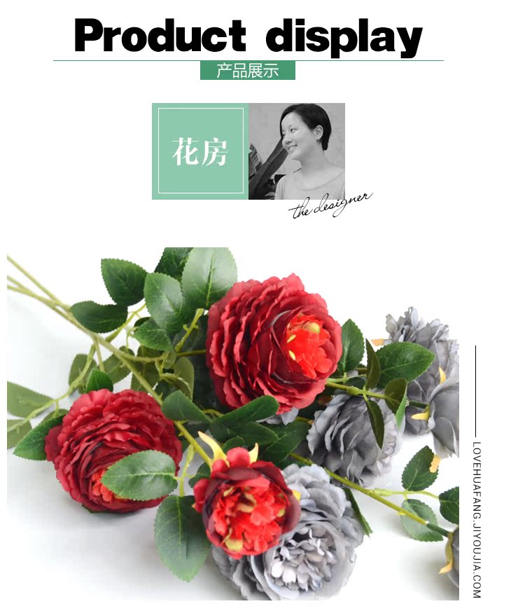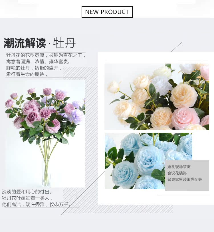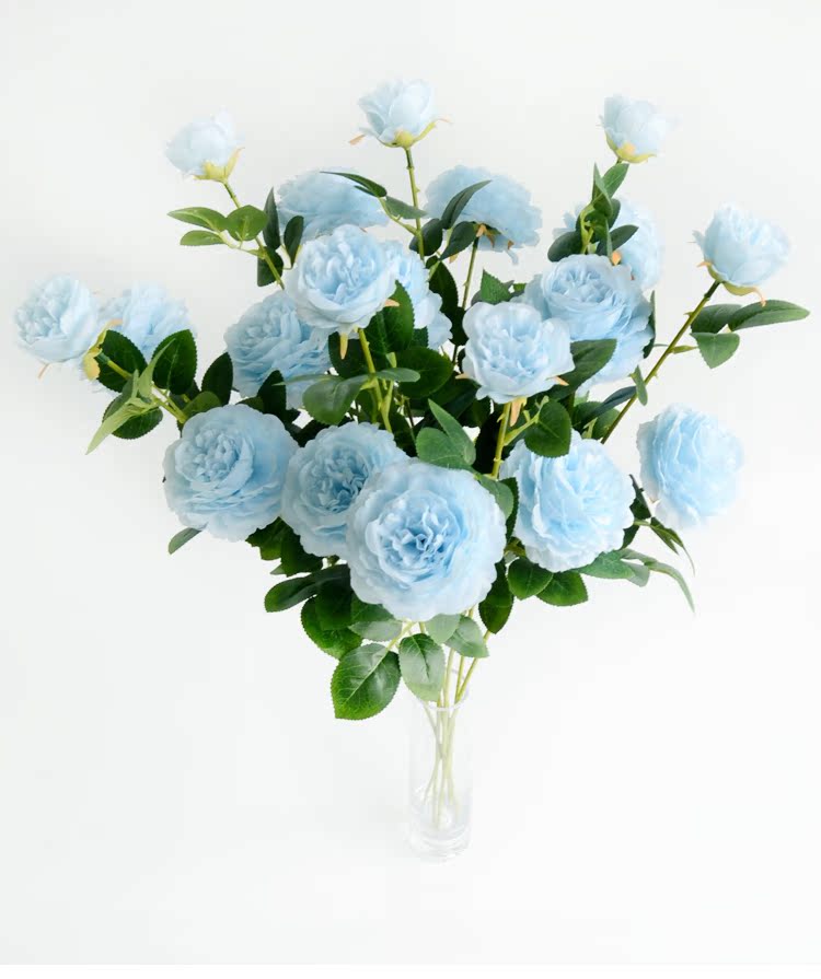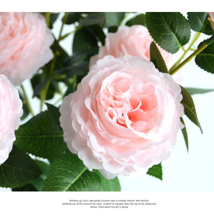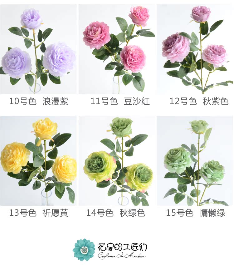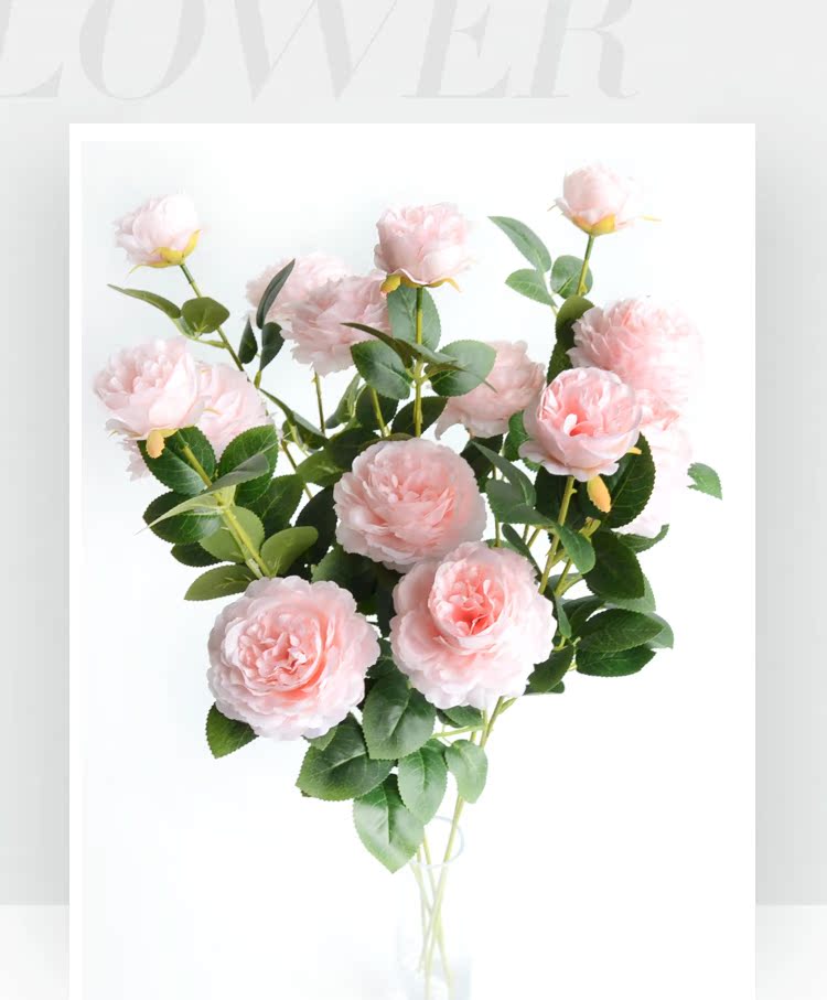 1號色純凈白1支長桿帶葉3頭西洋牡丹玫瑰花仿真花擺件家居飾品客廳裝飾花
