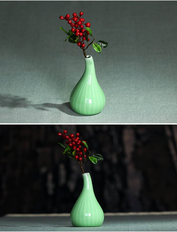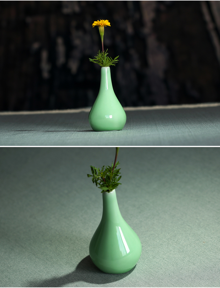 1號居室臥室擺件觀賞小號花器 臺面簡約現代桌面青瓷花瓶花器