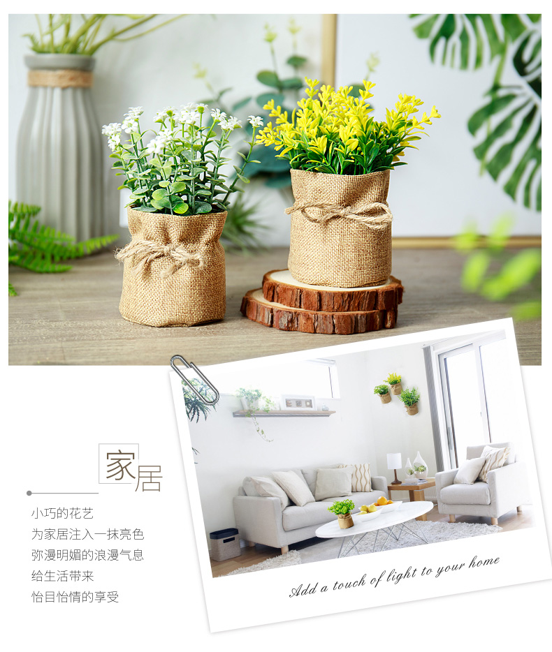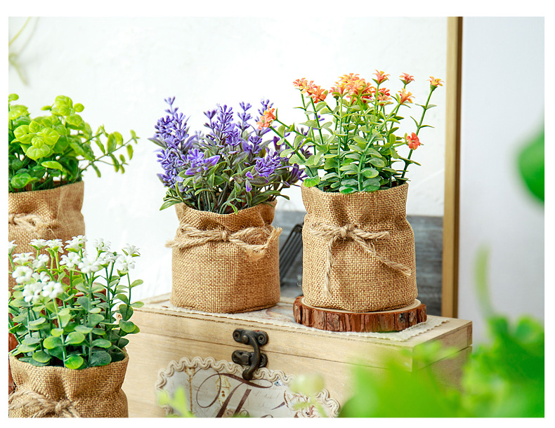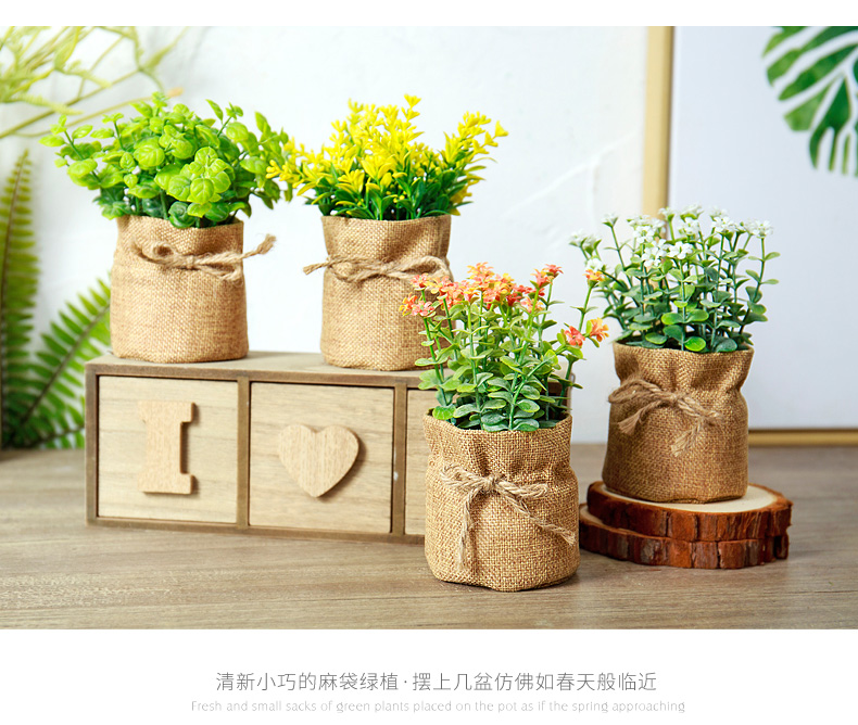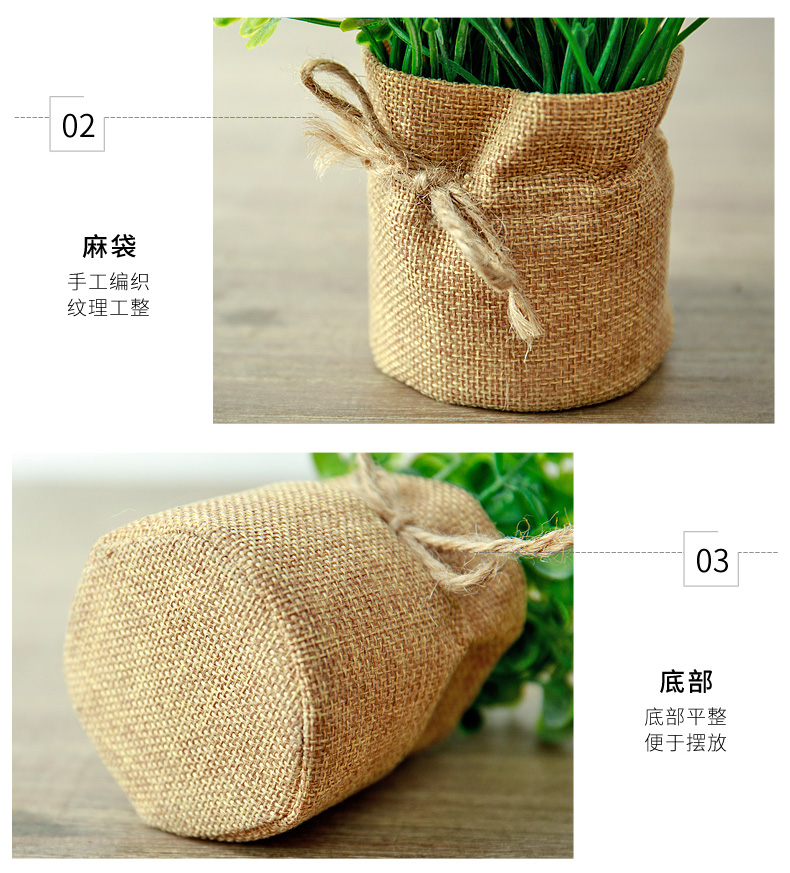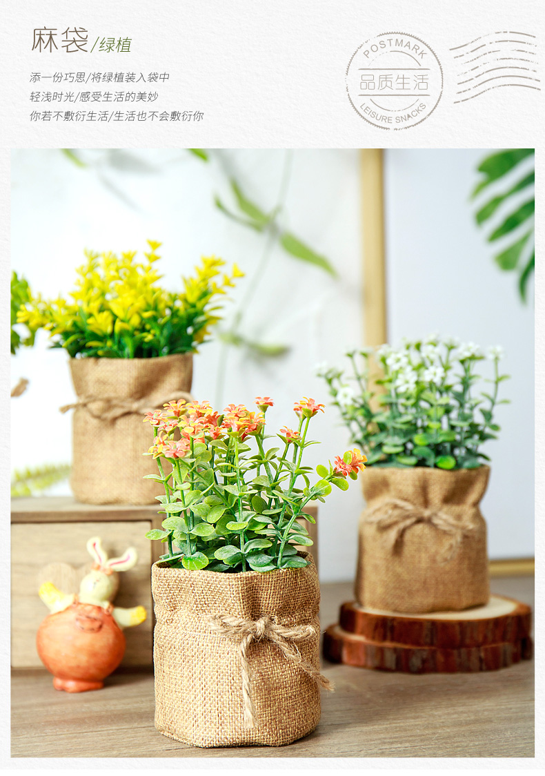 15cm帶紅花麻布盆栽家居裝飾桌面擺設創意田園家裝小花籃擺件客廳房間裝飾品