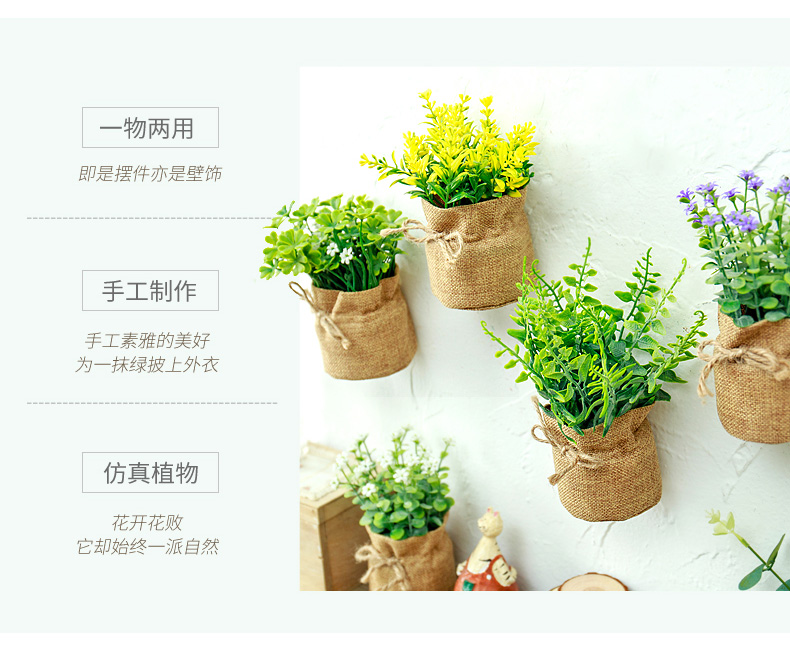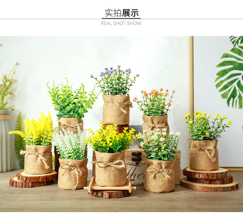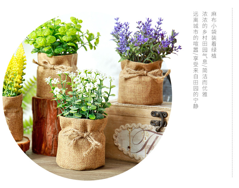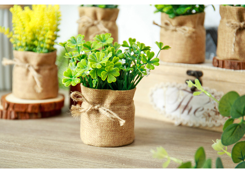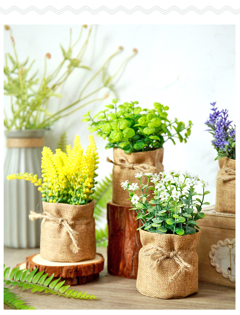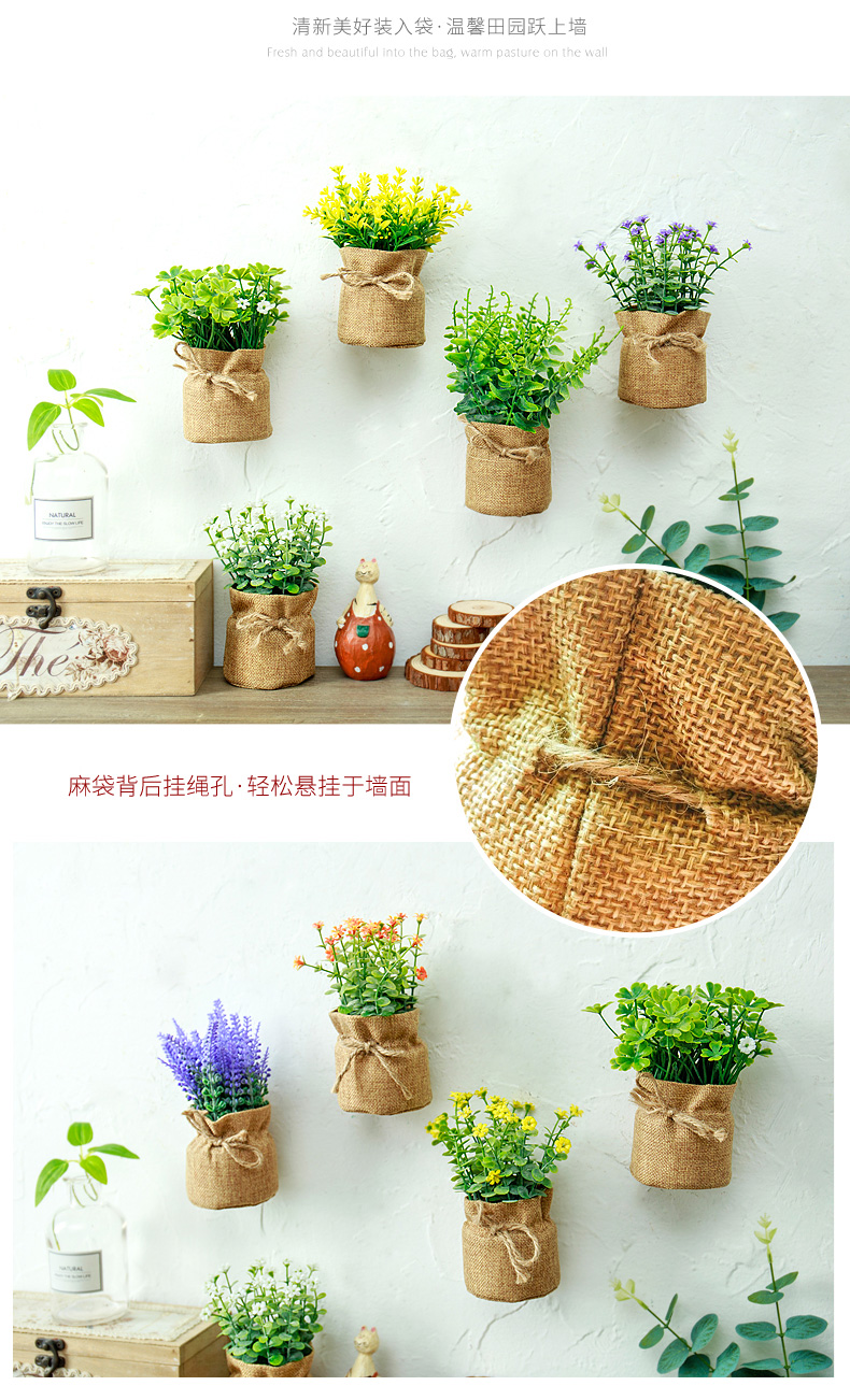 15cm帶紅花麻布盆栽家居裝飾桌面擺設創意田園家裝小花籃擺件客廳房間裝飾品
