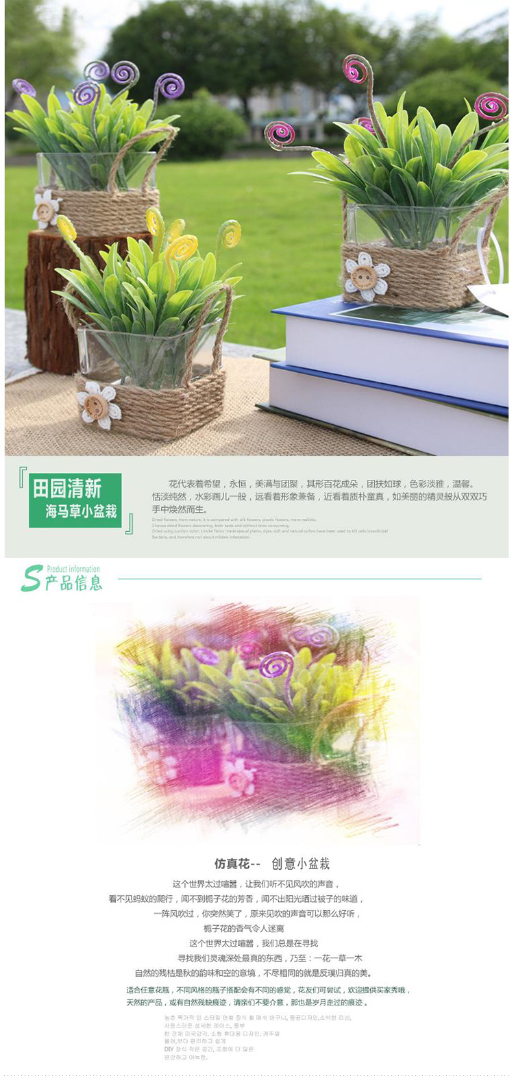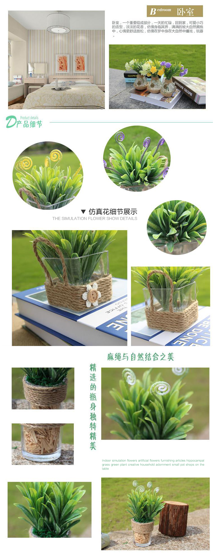 03 綠色花卉1室內假花仿真花卉擺件海馬草綠植創意小盆栽餐桌上家居裝飾品