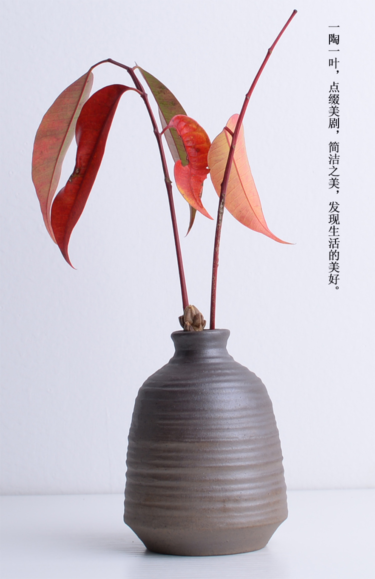 016-粗陶陶瓷小花瓶家居飾品擺件簡約日式禪意花器花插 粗陶柴燒花瓶