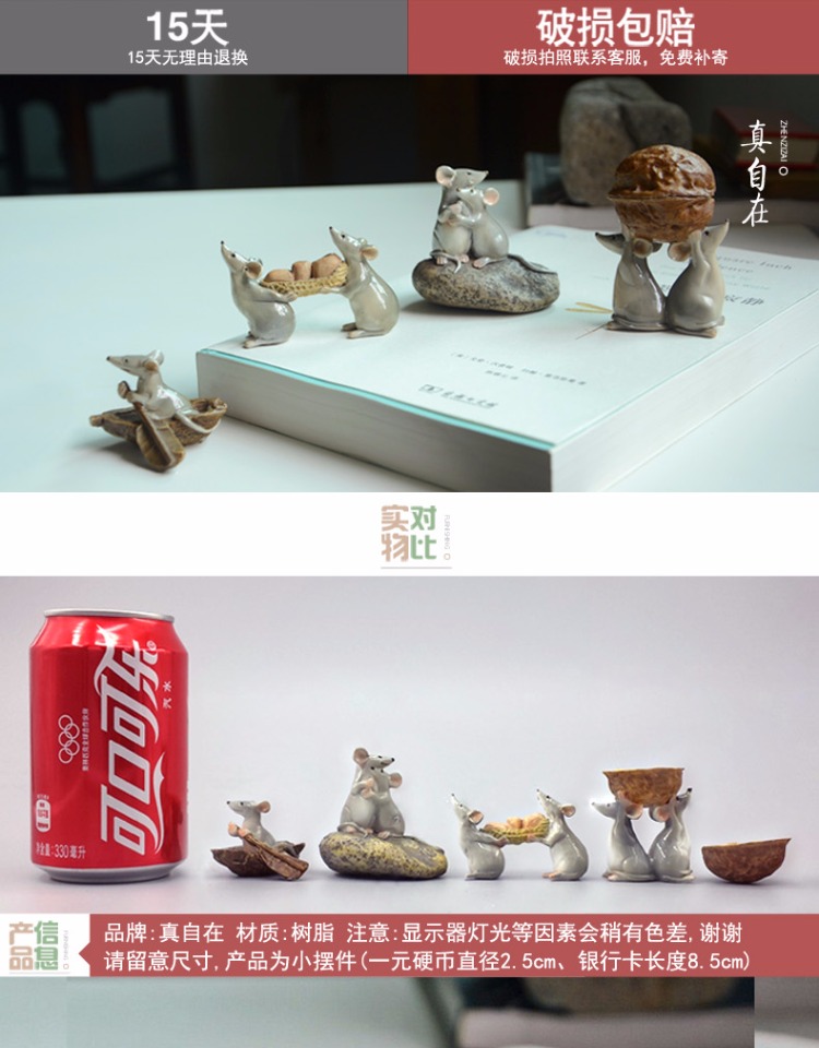 豐收花生灰老鼠 高4cm真自在迷你老鼠樹脂禮物兒童小孩禮品創意動物辦公室擺件裝飾