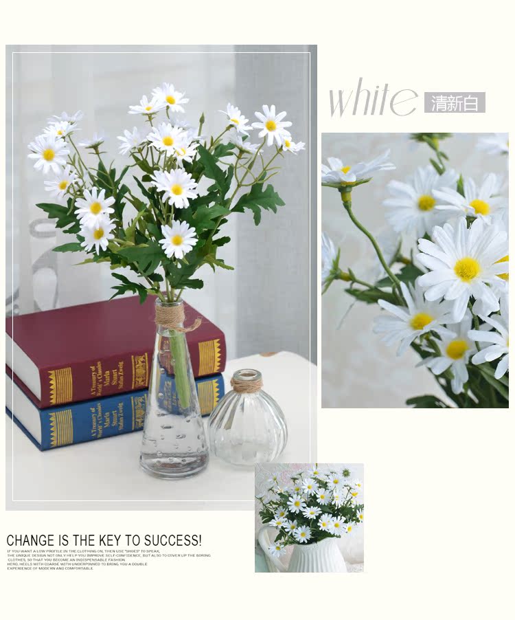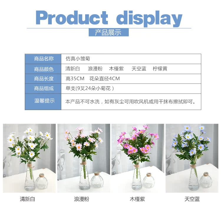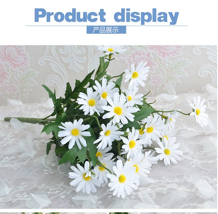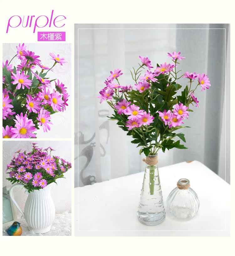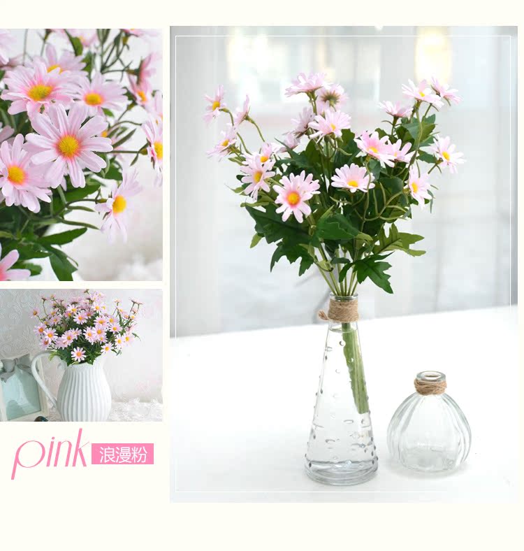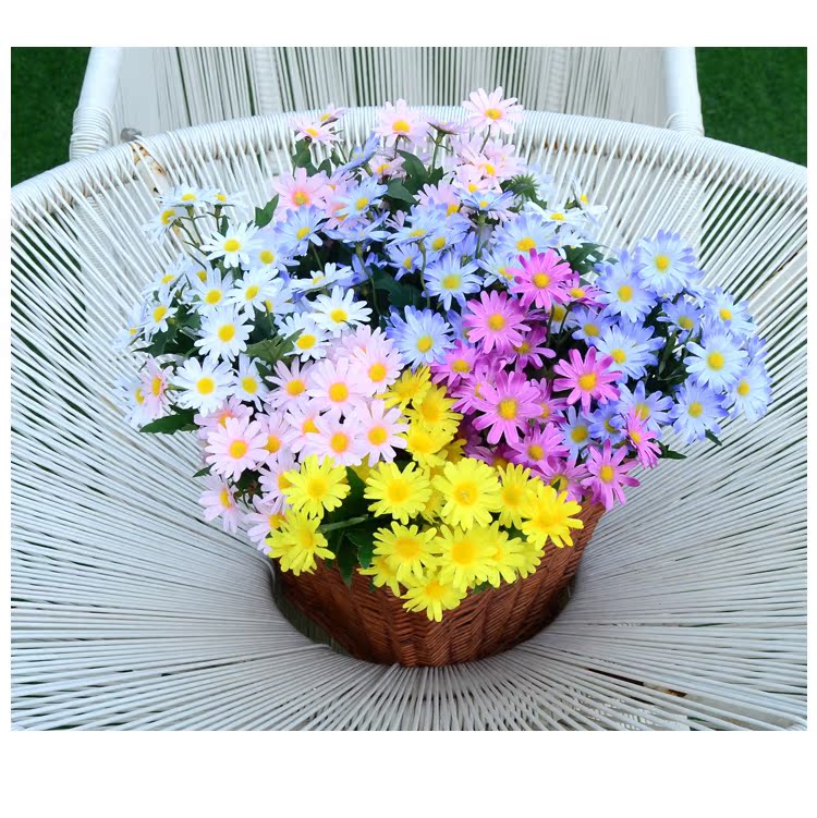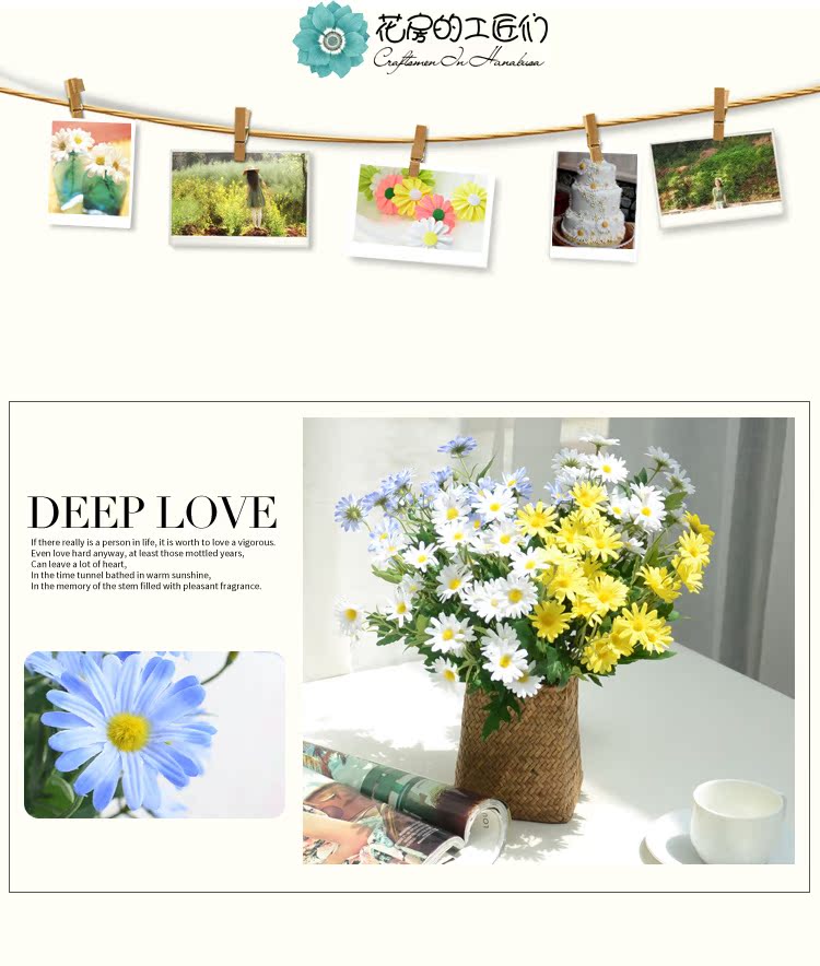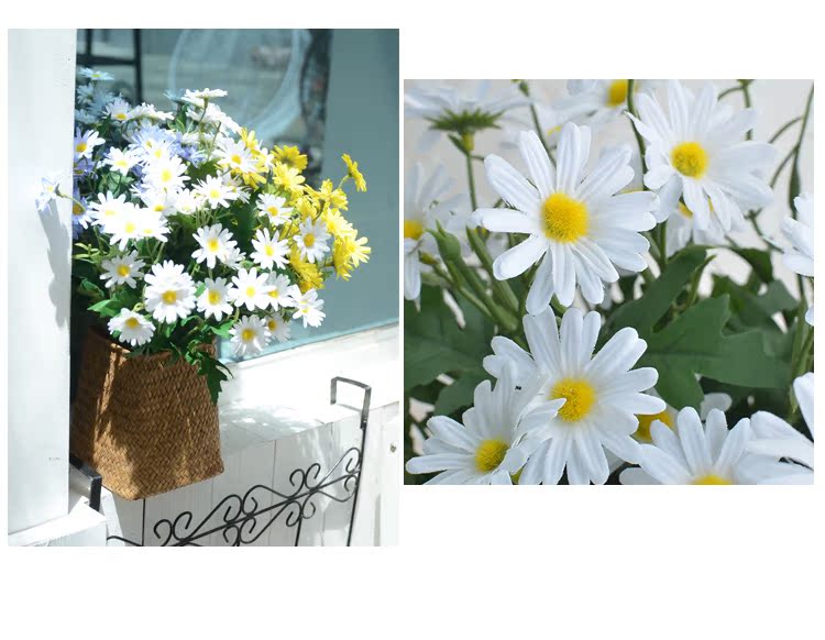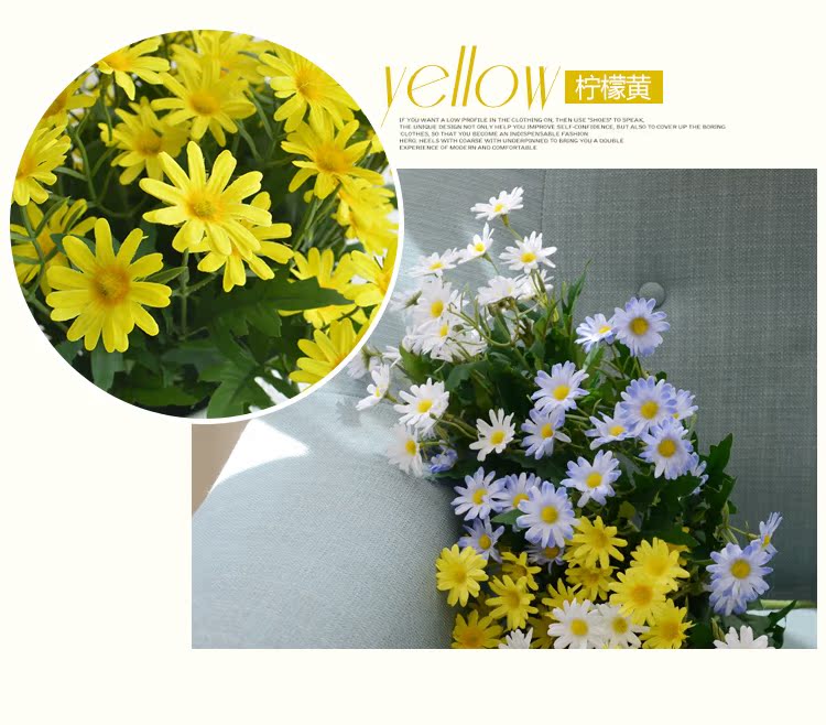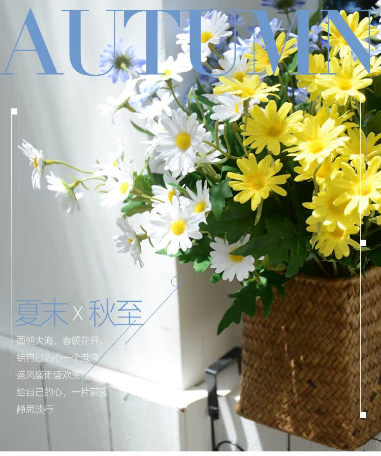 檸檬黃9叉24朵仿真花小雛菊花裝飾花假花客廳壁掛花墻絹花花束插花擺件