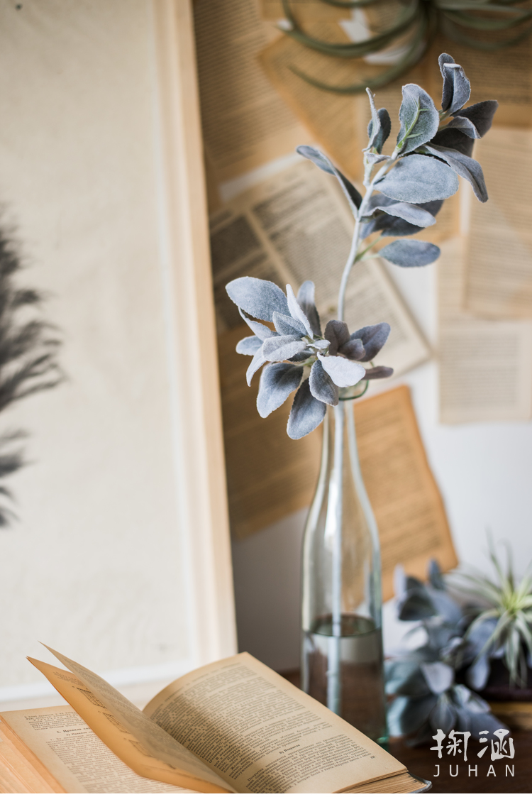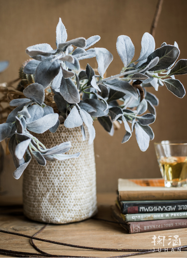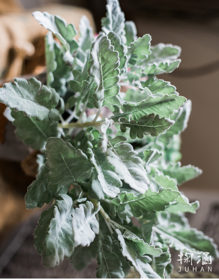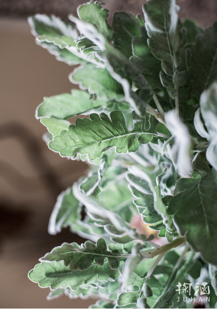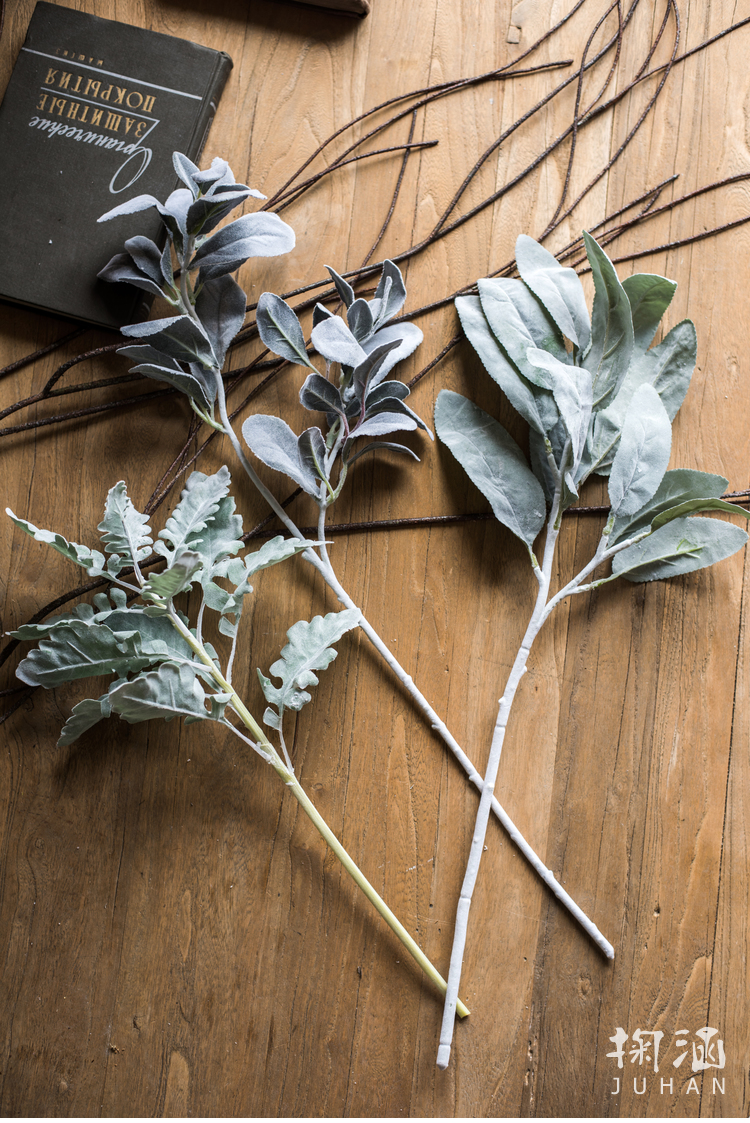 霜葉一支【掬涵】銀葉菊仿真植物 花藝配葉綠植插花裝飾桌面擺件北歐美式