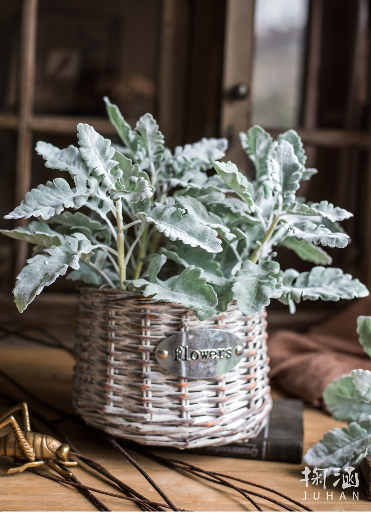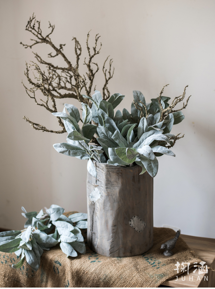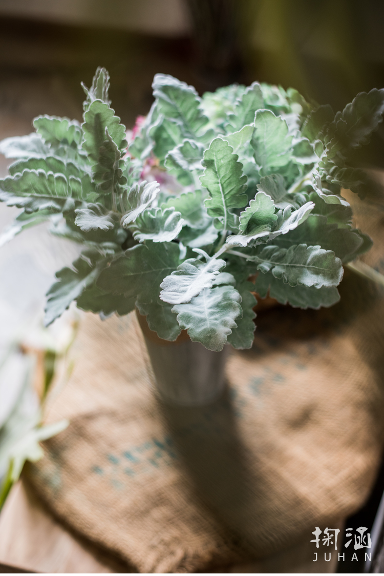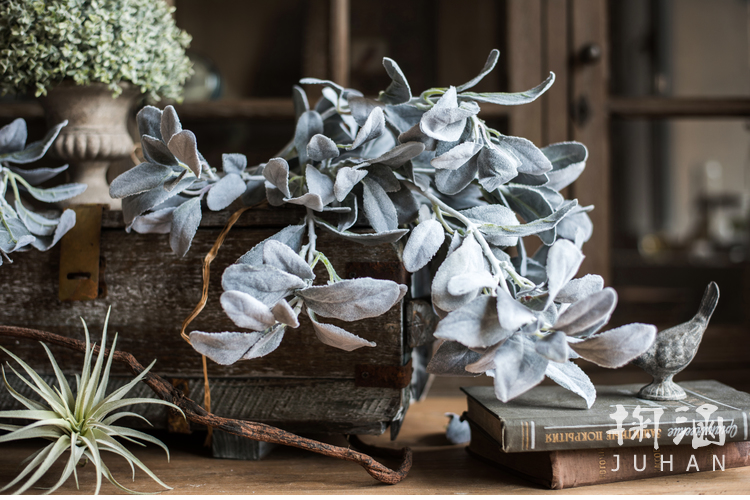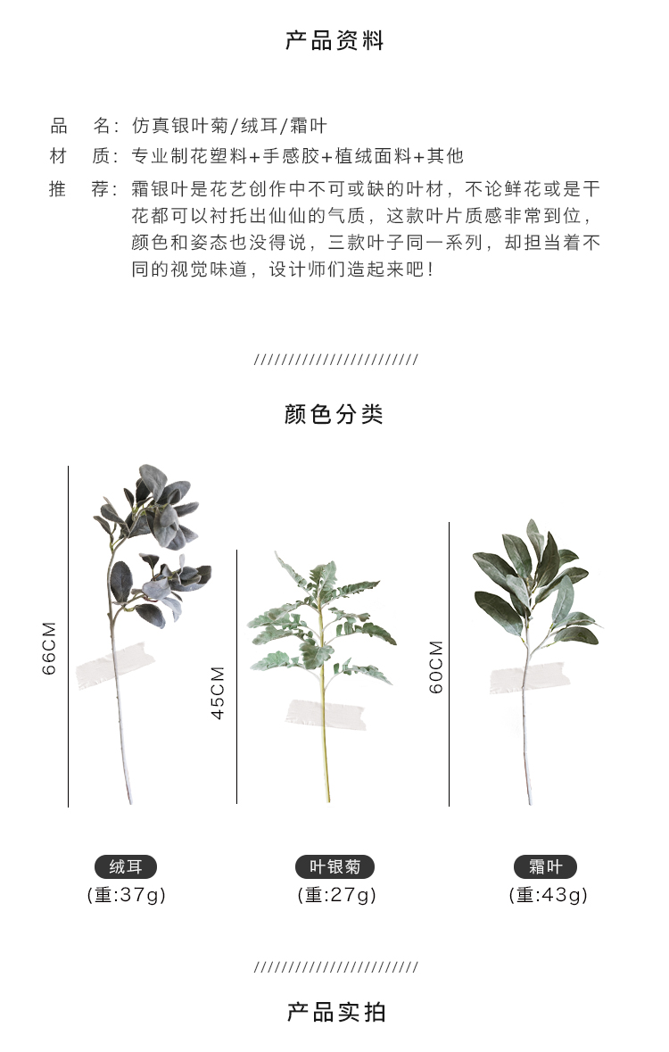 霜葉一支【掬涵】銀葉菊仿真植物 花藝配葉綠植插花裝飾桌面擺件北歐美式