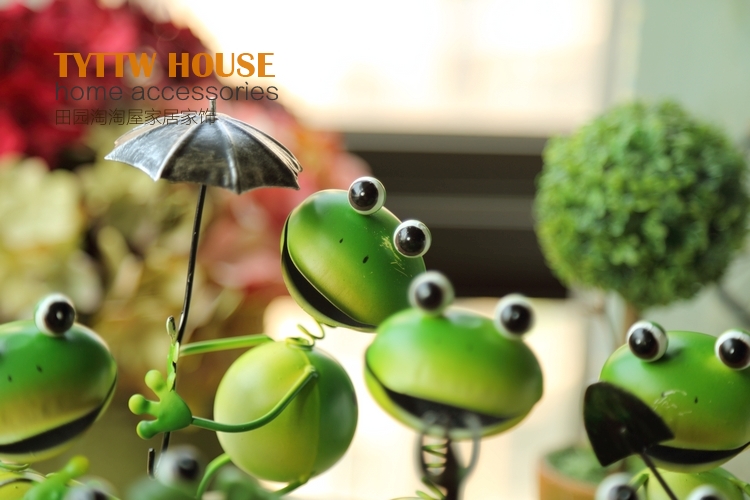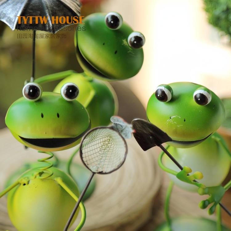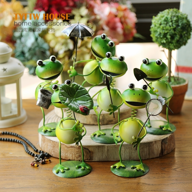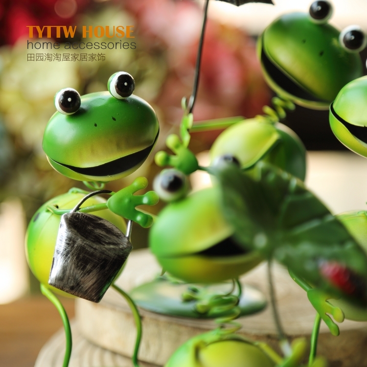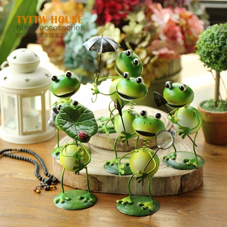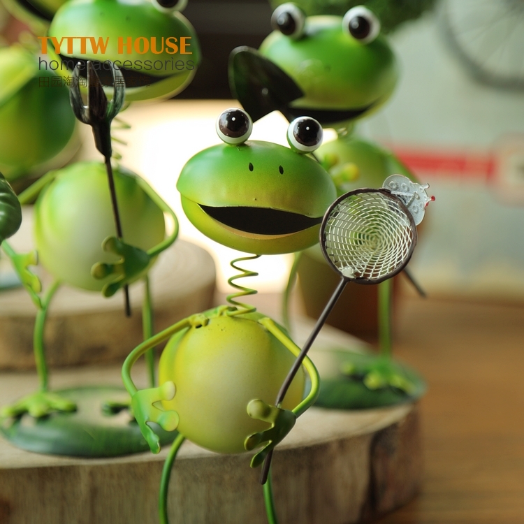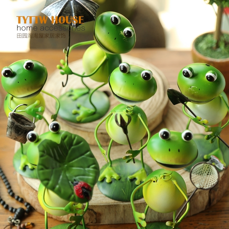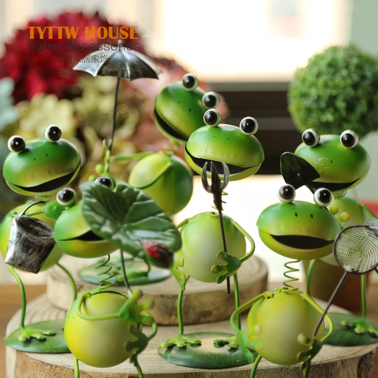 可愛夏季 俏皮鐵皮娃娃小青蛙 家居裝飾品 隔板擺件 桌面小擺設