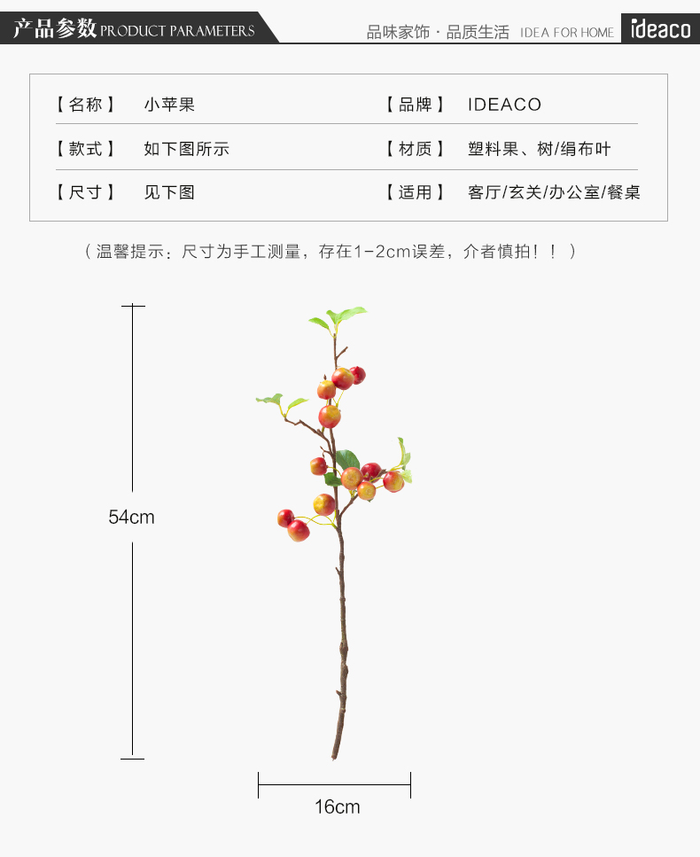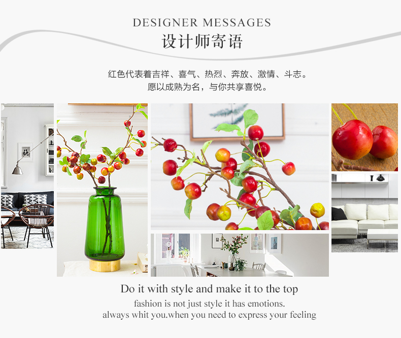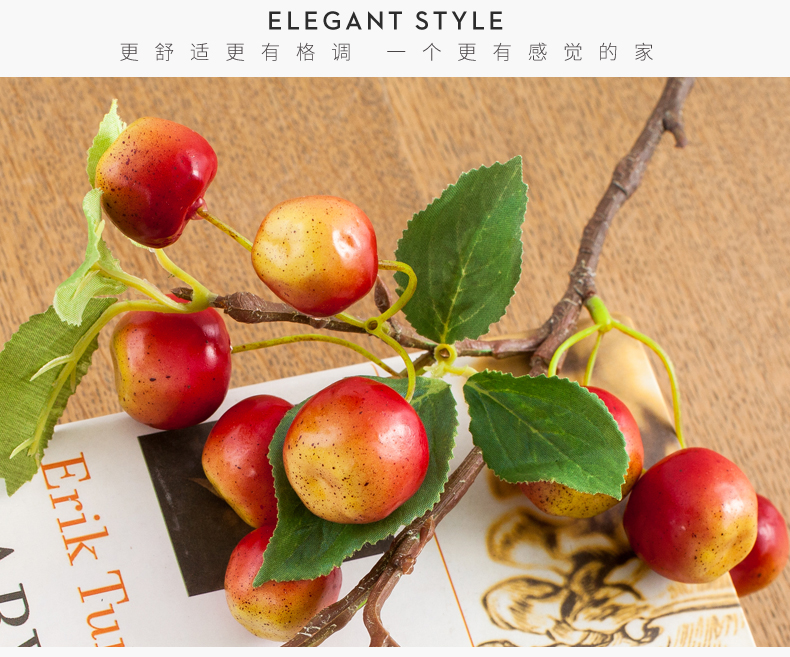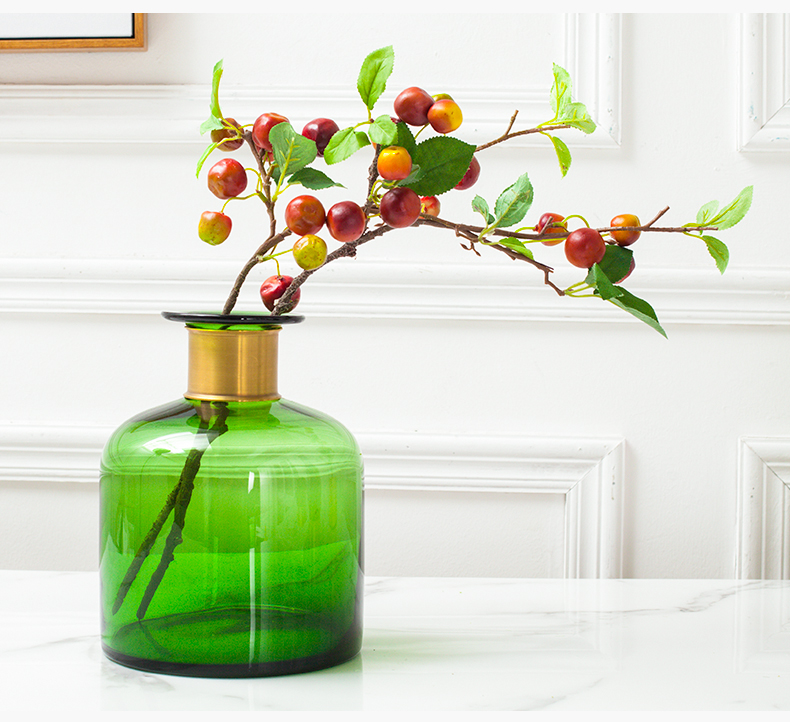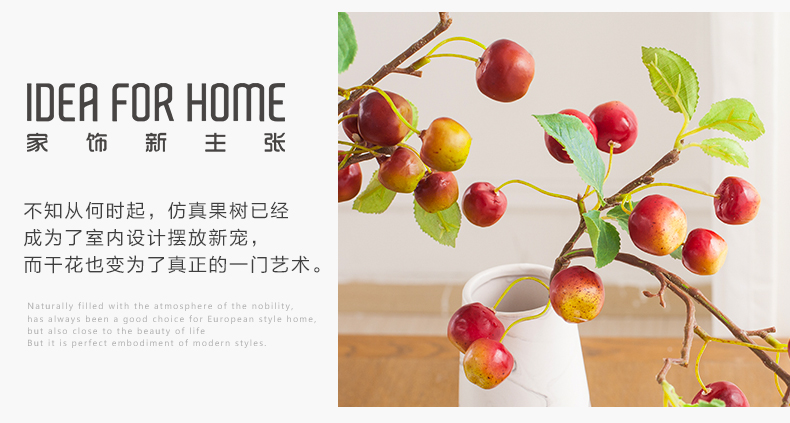 墨然大號花瓶+2支小蘋果仿真果小蘋果野果實植物擺飾 田園高枝果樹漿果手感 拍攝道具