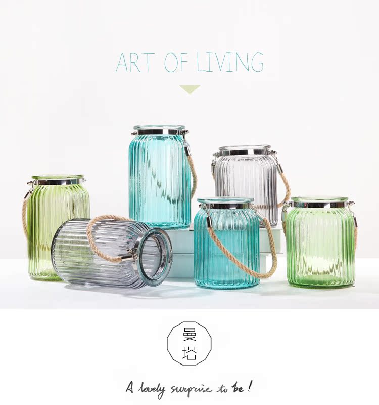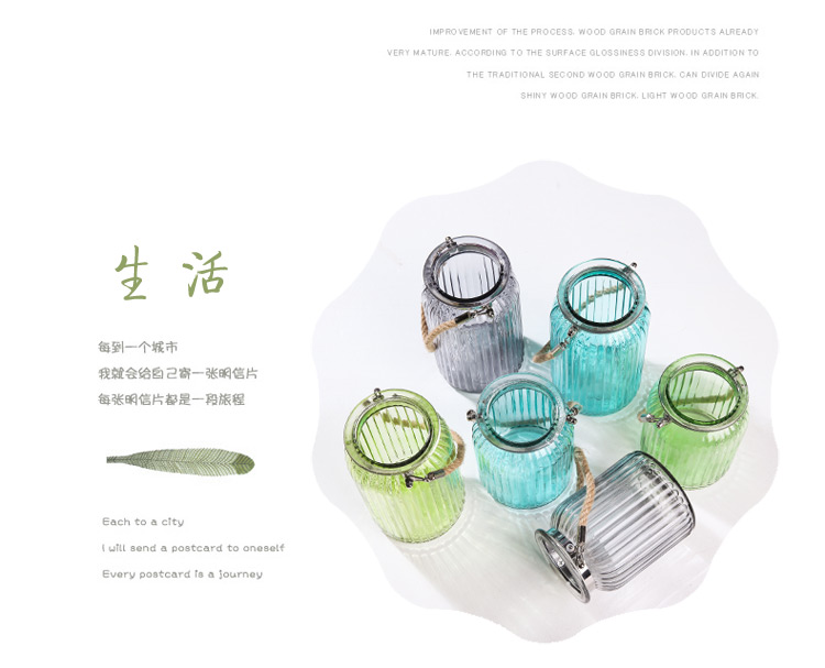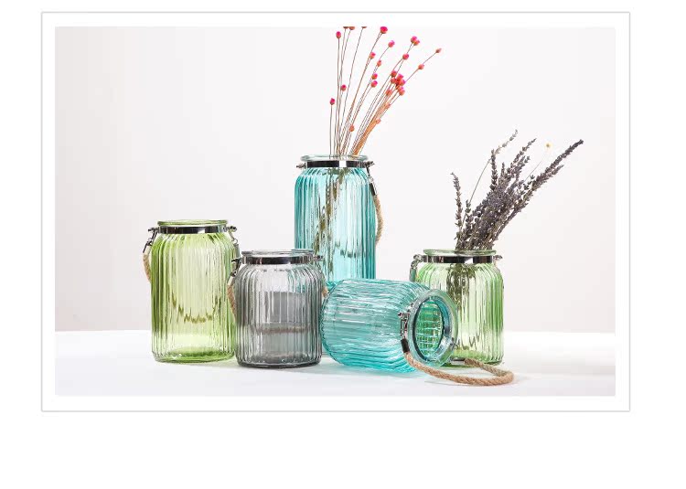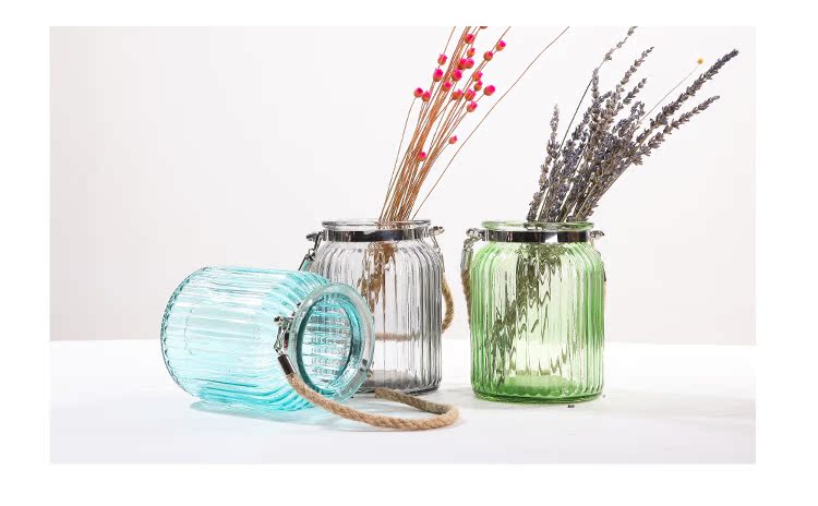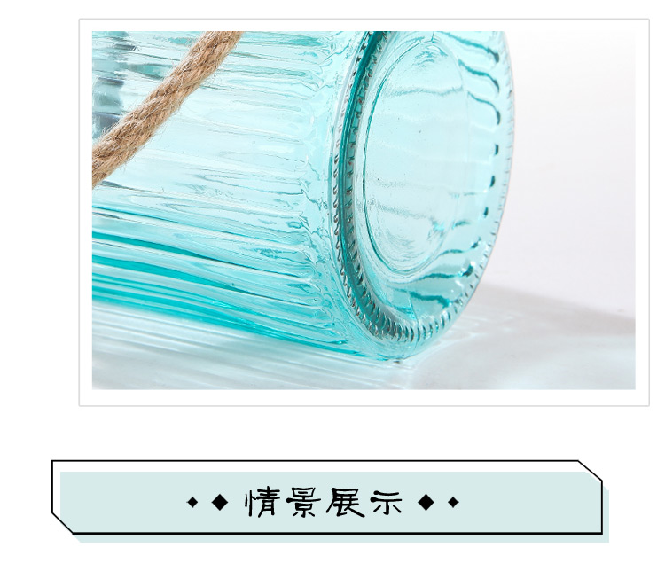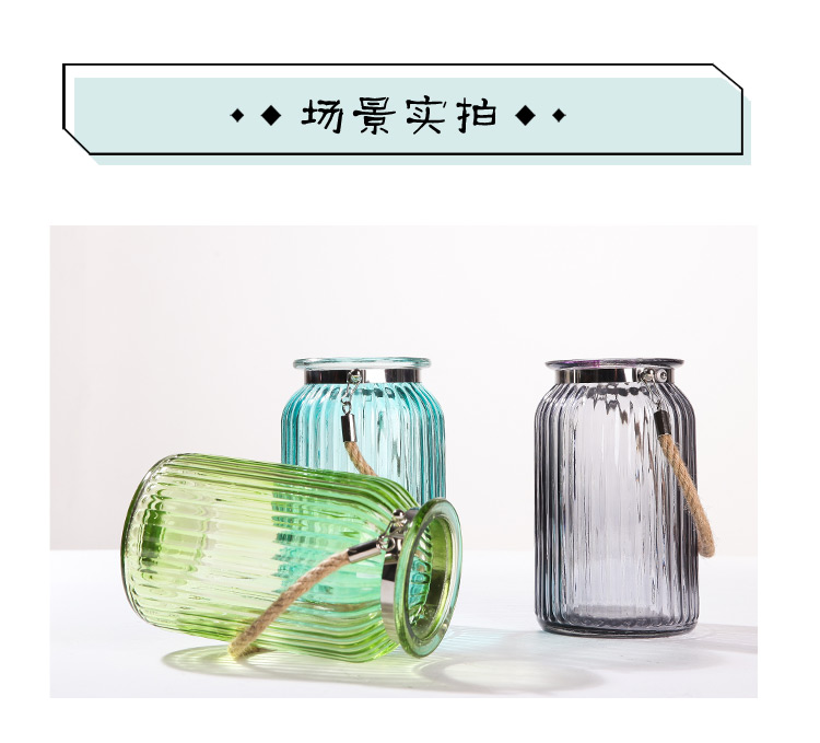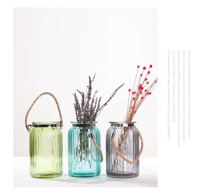 寬口玻璃帶麻繩中號煙灰北歐簡約現代圓口玻璃花瓶吊瓶創意透明插花器水培客廳裝飾品擺件