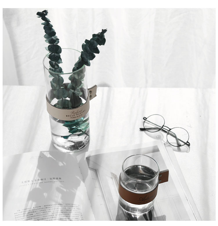 綁帶花瓶 米色(小號)態生活 北歐皮革綁帶花器 創意直筒玻璃花瓶擺件插花干花水培水杯