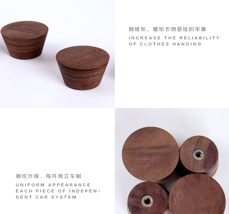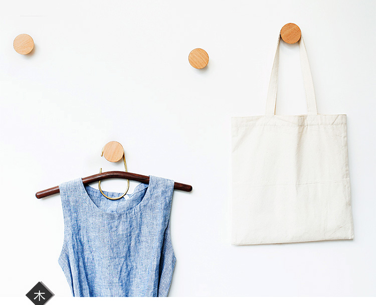 黑胡桃木小號一個(直徑50MM)客廳壁掛墻上實木掛衣鉤免釘無痕掛鉤北歐創意衣帽鉤粘鉤墻面裝飾