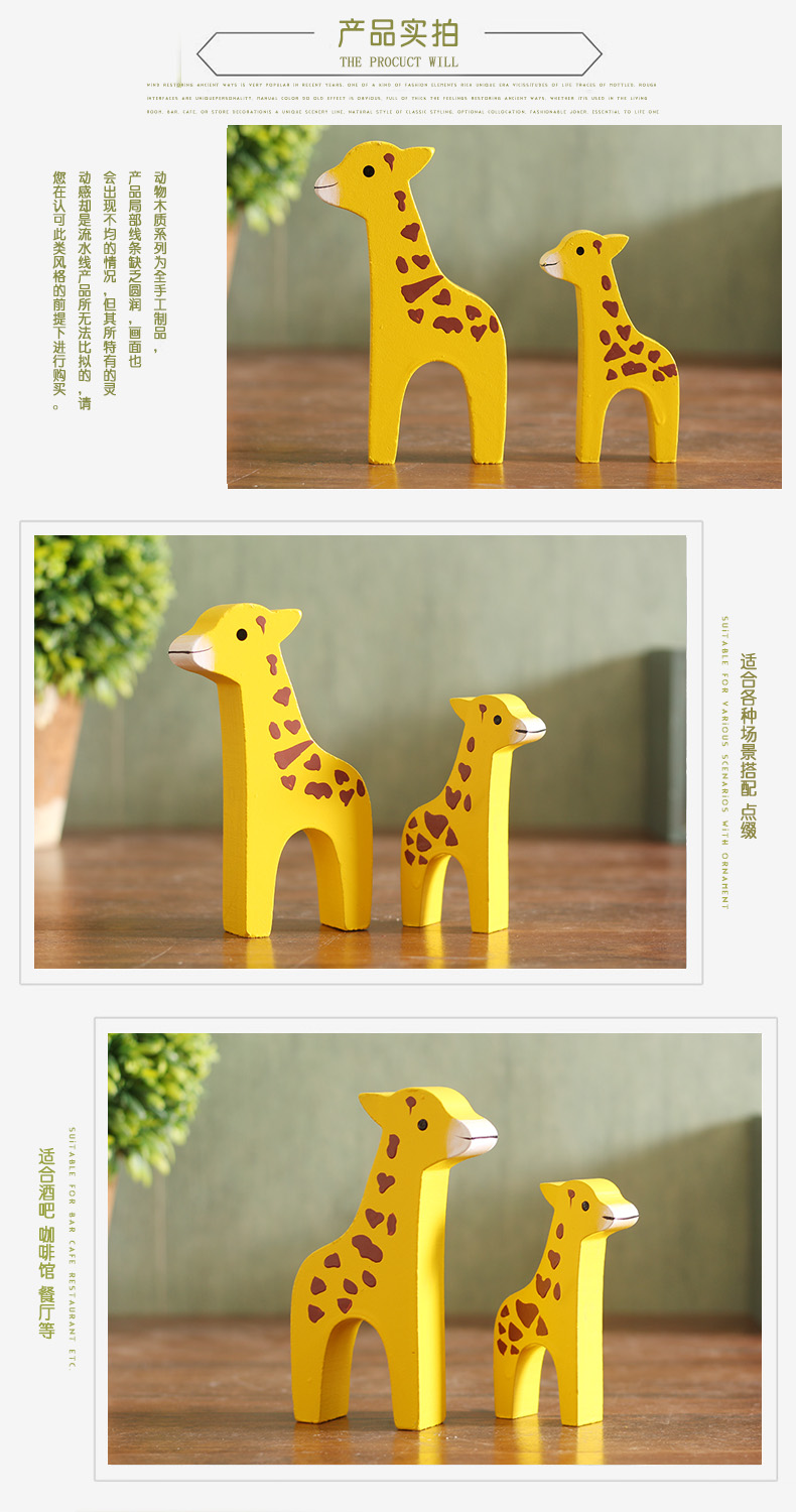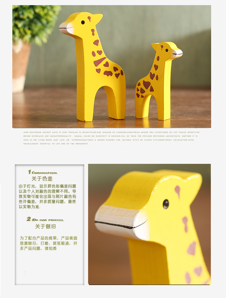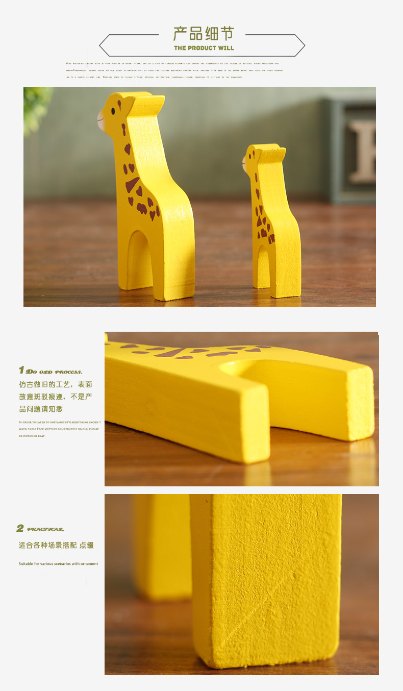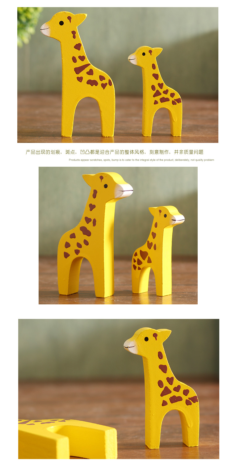 黃色家居小飾品可愛木質長頸鹿擺件室內裝飾情侶禮品擺飾櫥窗展示道具