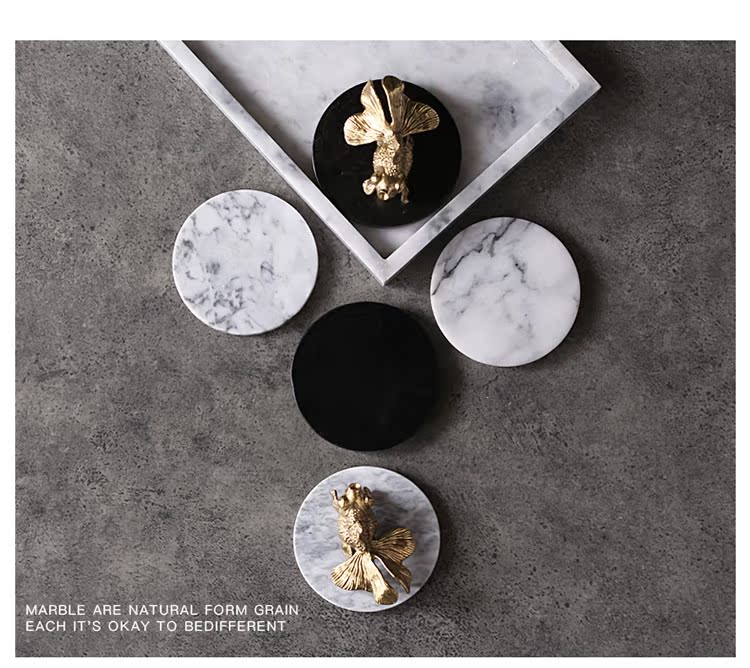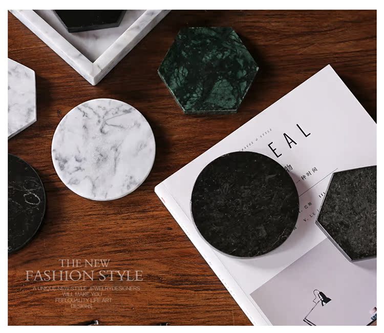 圓形白色純手工天然大理石杯墊 北歐家居裝飾品 餐廳客廳茶幾裝飾品擺設