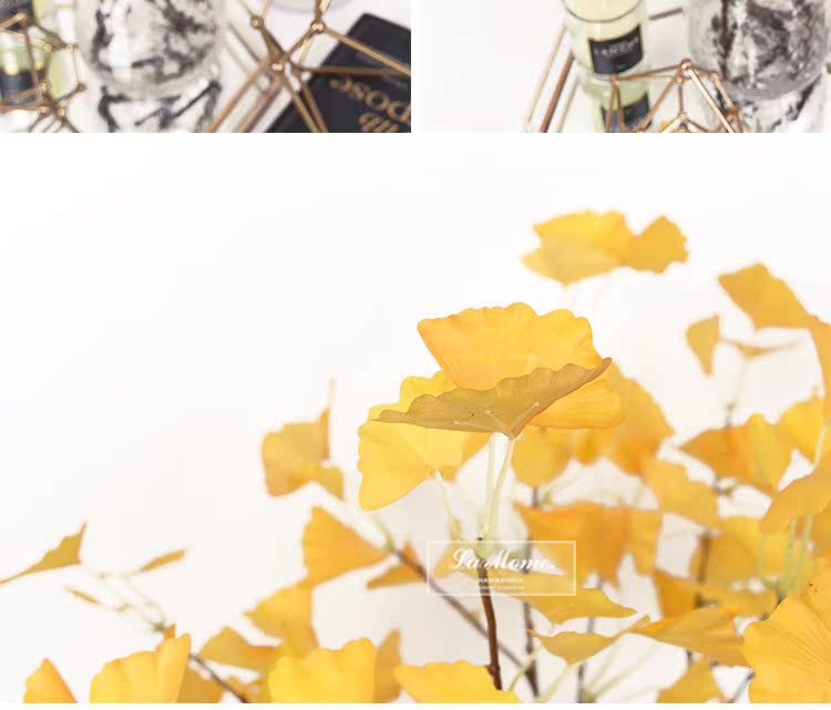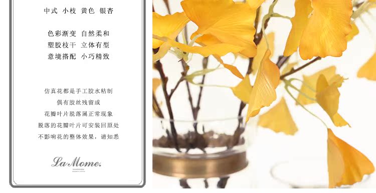 黃色LaMome.中式仿真花小枝黃色銀杏葉/植物裝飾葉子插花家居擺放假花