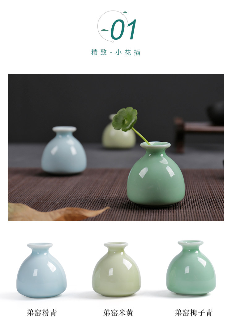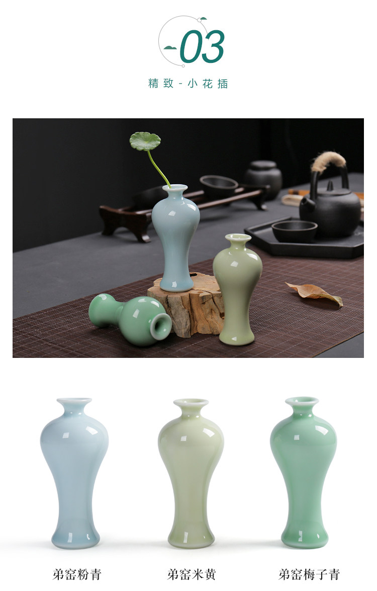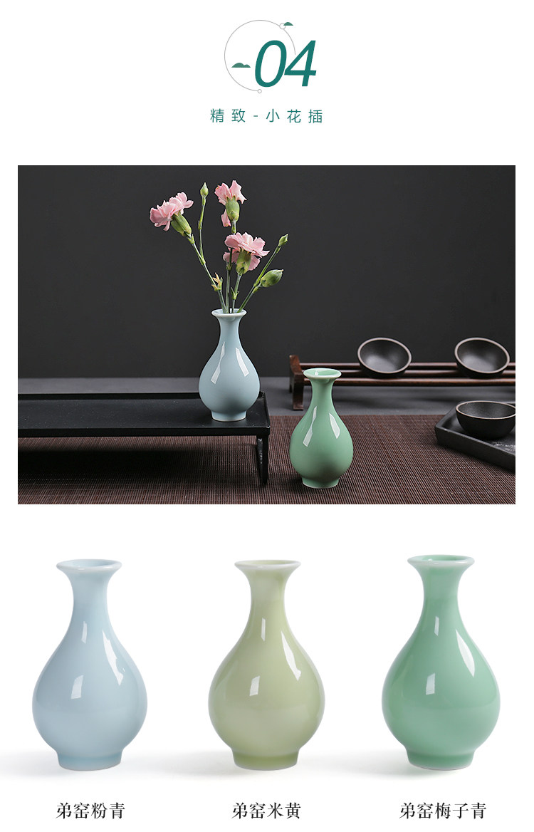 款式一:弟窯米黃天天特價龍泉青瓷花插花器創意陶瓷家居擺件裝飾品小花瓶