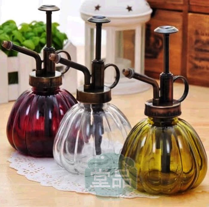 酒紅色美式鄉村風格復古南瓜彩色玻璃小噴壺園藝用品玻璃創意工藝品擺件