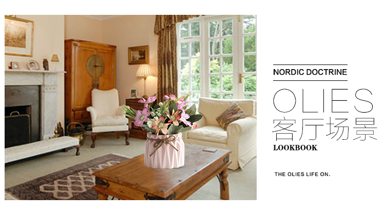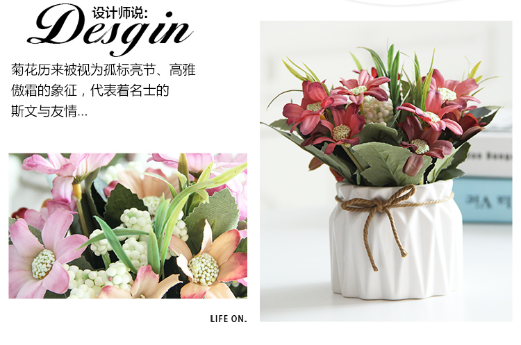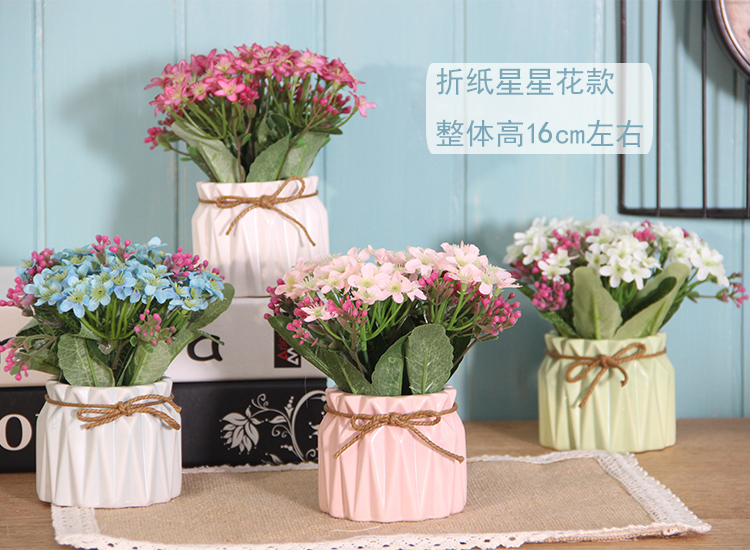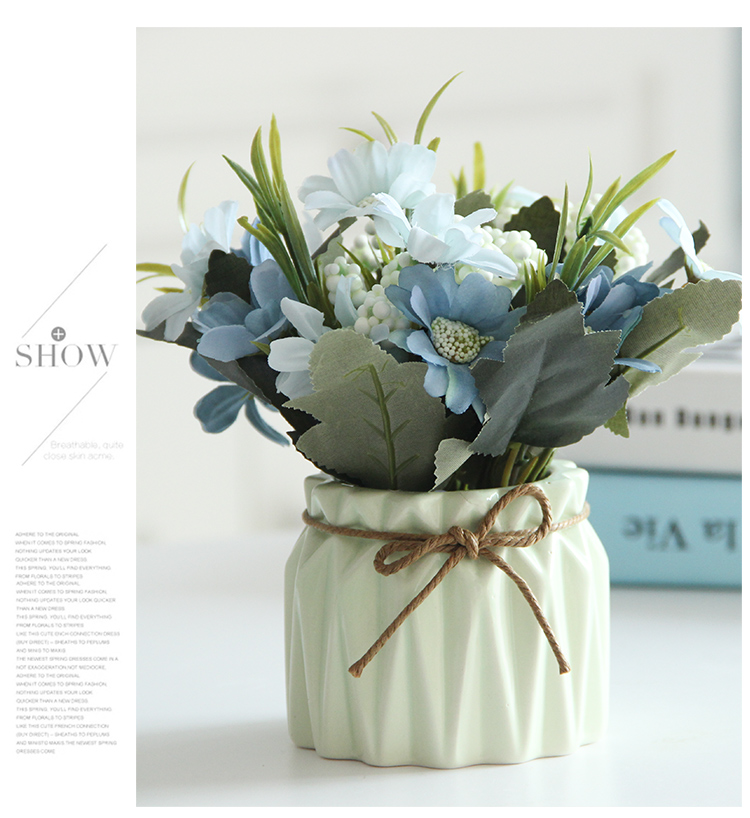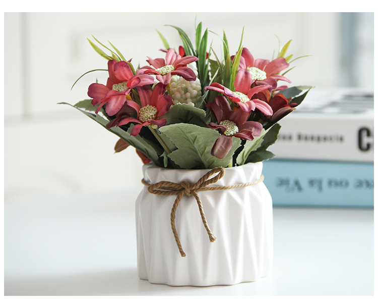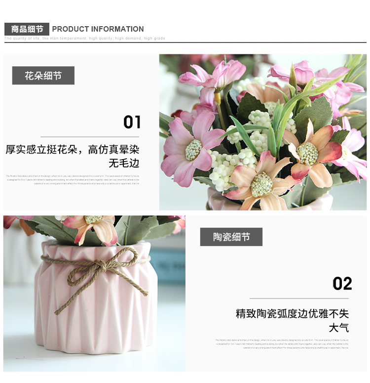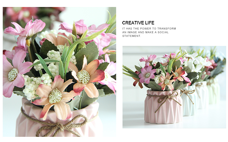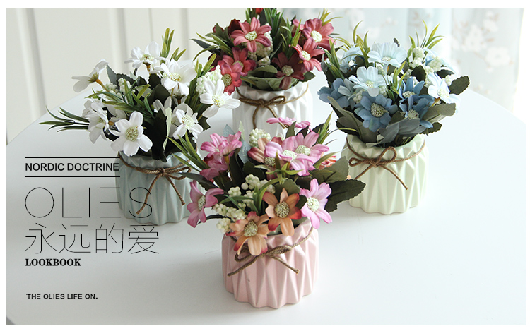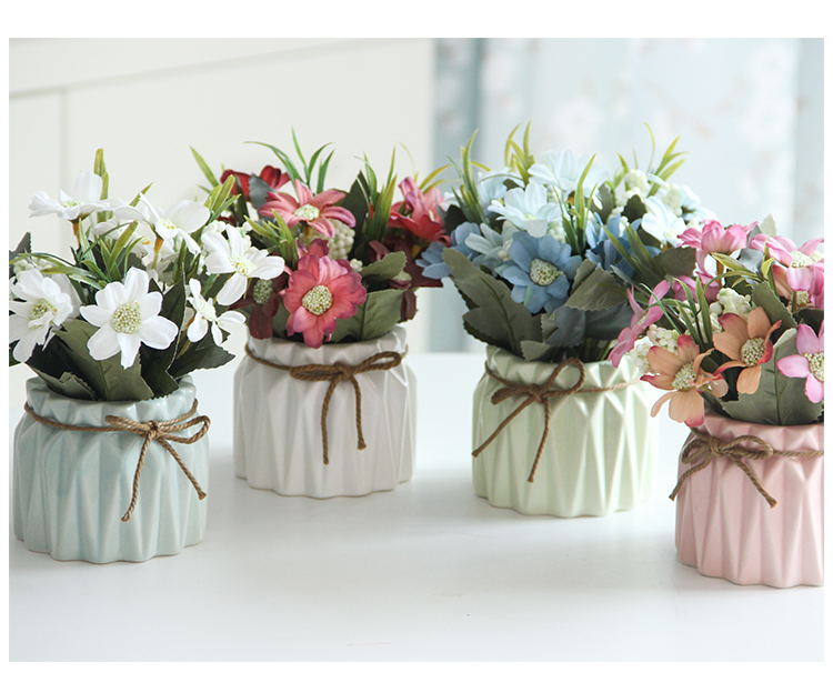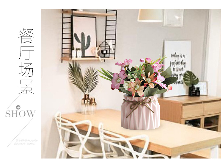 粉瓶+粉花簡約田園仿真花套裝假花雛菊小盆栽花藝擺件花瓶餐桌隔板桌面裝飾