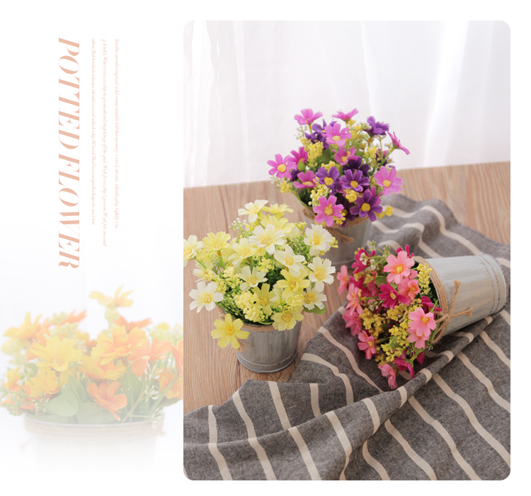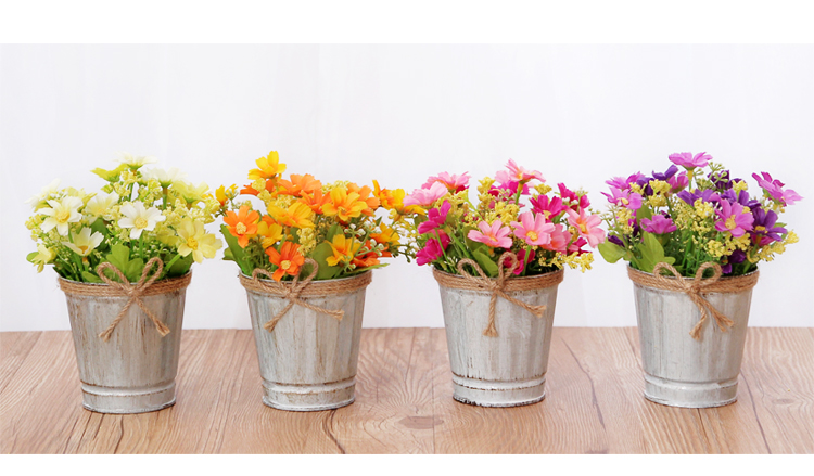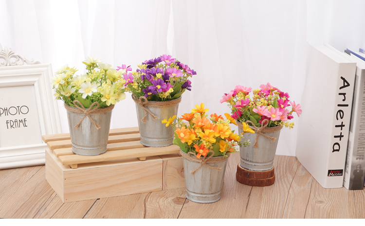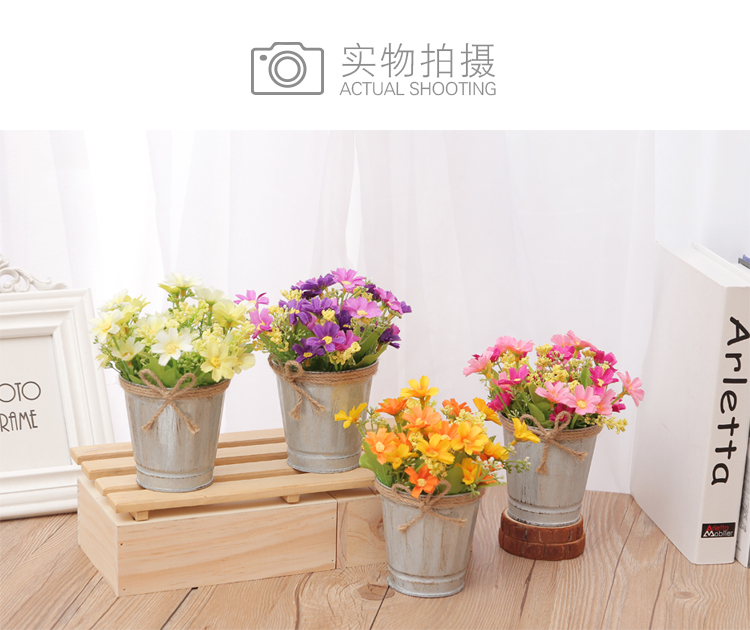 粉色麻繩桶仿真盆栽麻繩鐵桶仿真花仿真盆景女生房間桌面客廳餐廳盆景裝飾花家居飾品