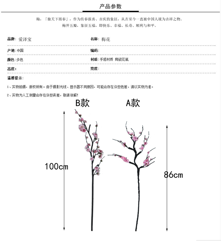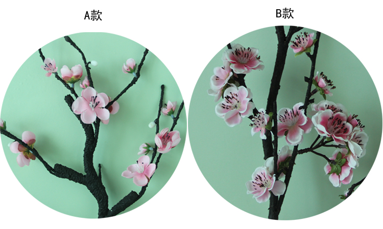 粉色(B款高品質)單枝長支仿真梅花桃花絹花干枝臘梅花藝客廳擺設落地插花裝飾花
