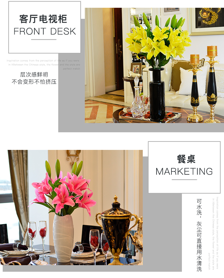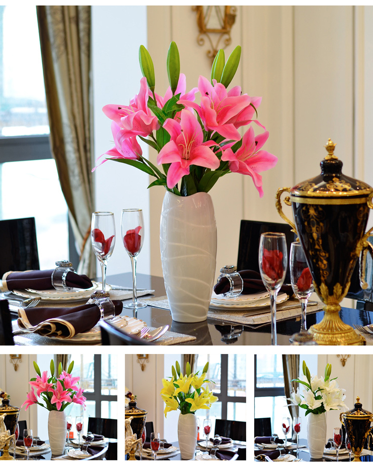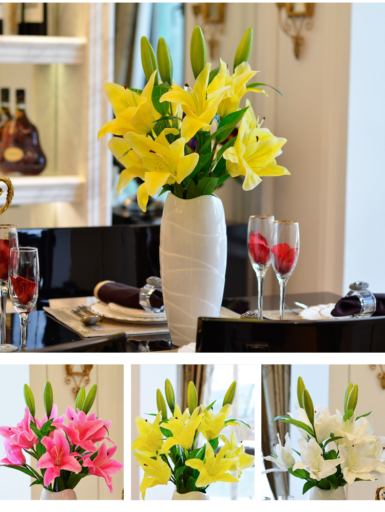 粉百合+白天鵝花瓶套裝pu手感花仿真百合花客廳擺設百合把束假花干花裝飾絹花特價