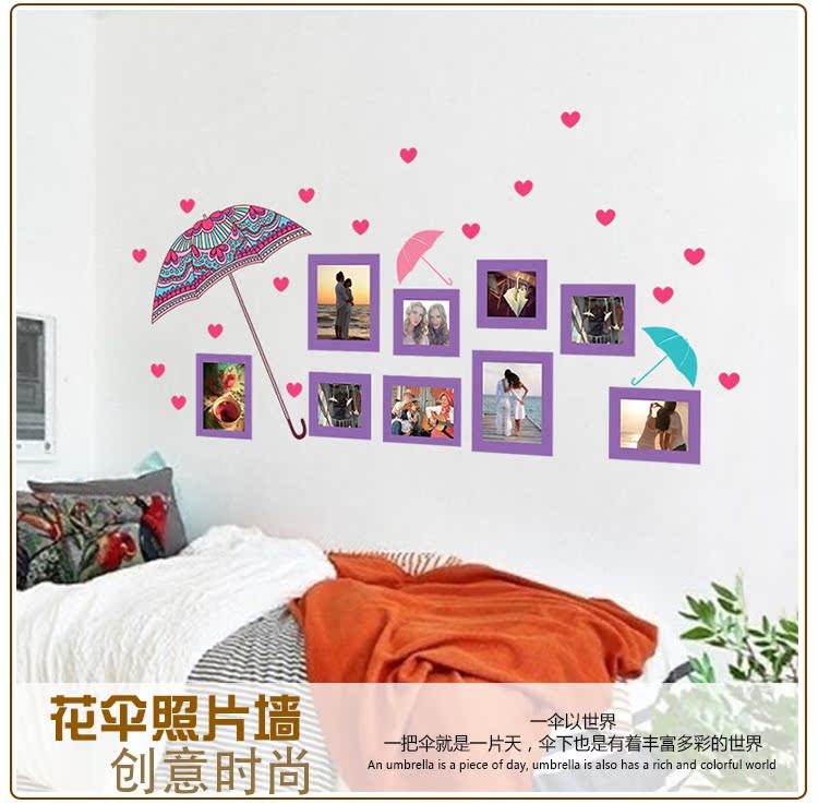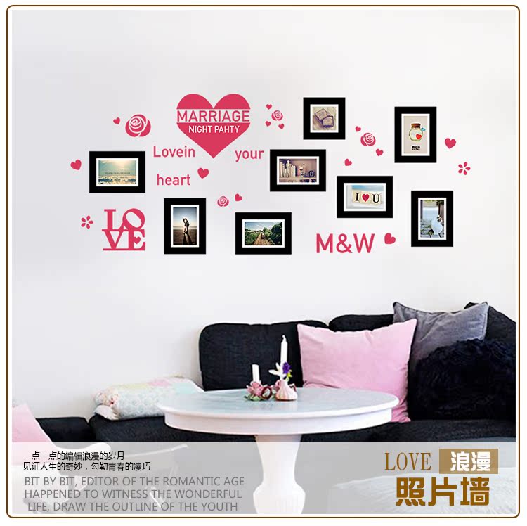 書架照片墻 收藏贈蝴蝶特大溫馨簡約裝飾貼紙創意墻紙貼畫客廳臥室相片墻墻背景墻貼愛心照片
