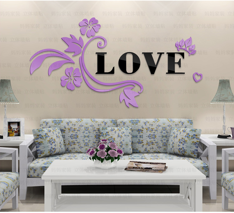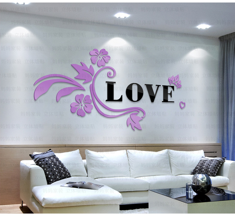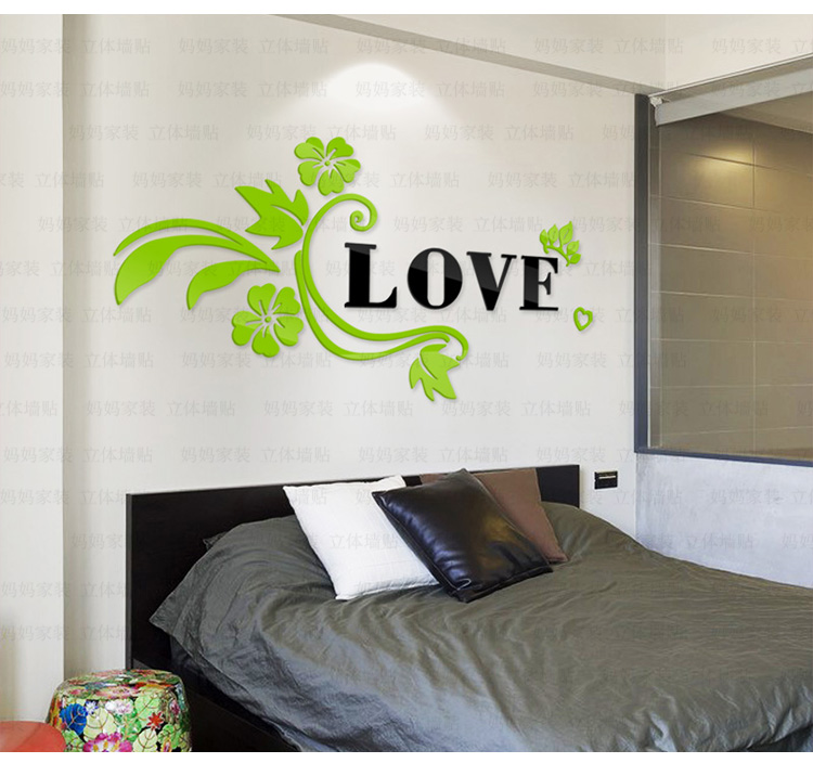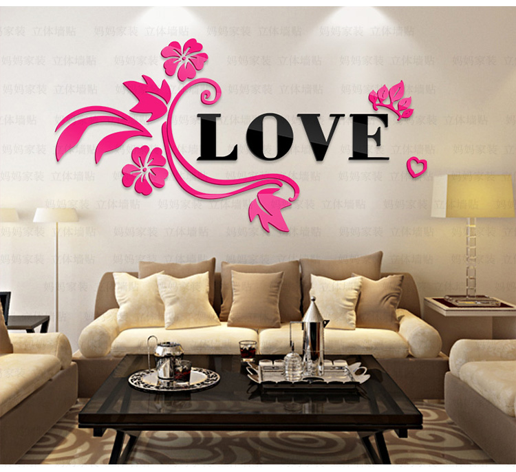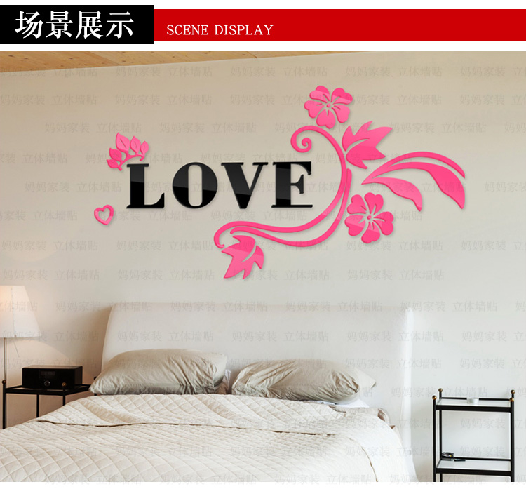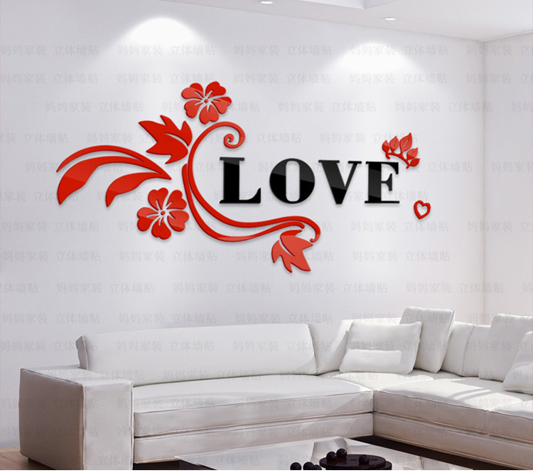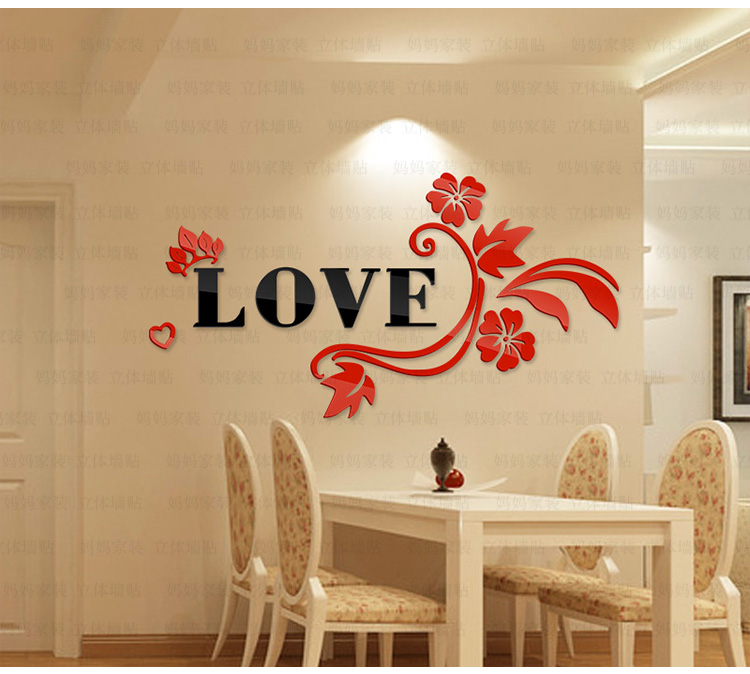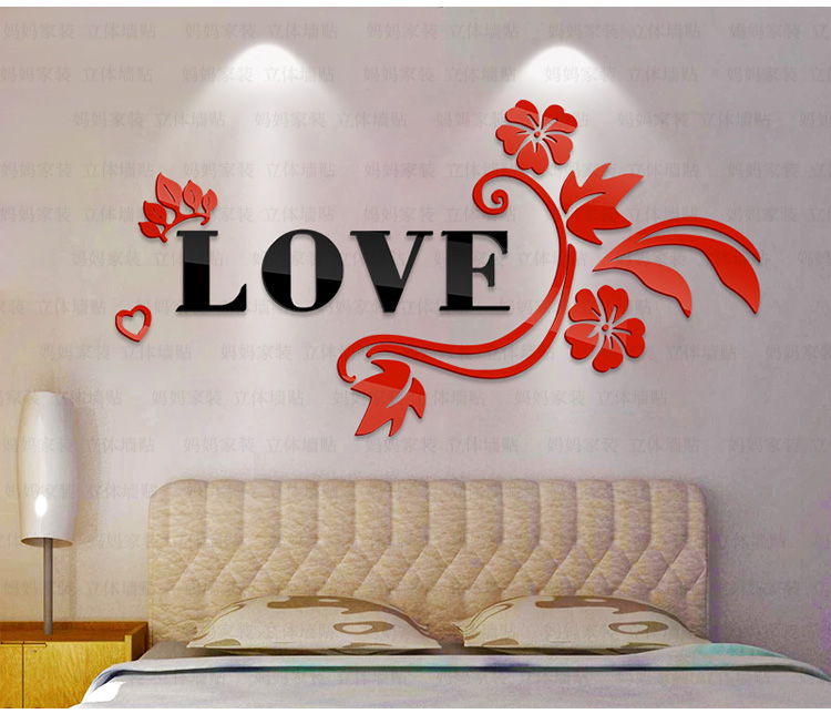 紅花+黑字(右版)小3D亞克力立體墻貼畫創意浪漫花藤臥室床頭客廳背景墻壁紙裝飾墻貼