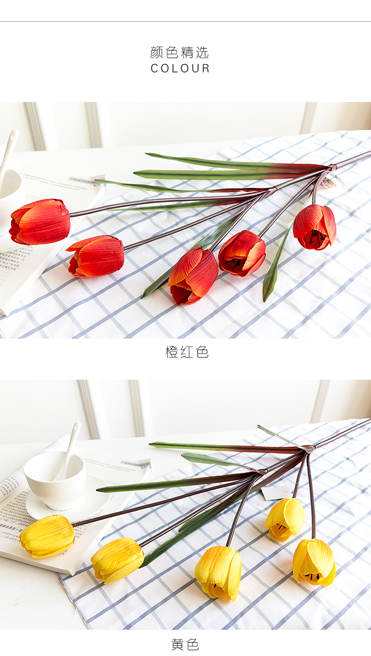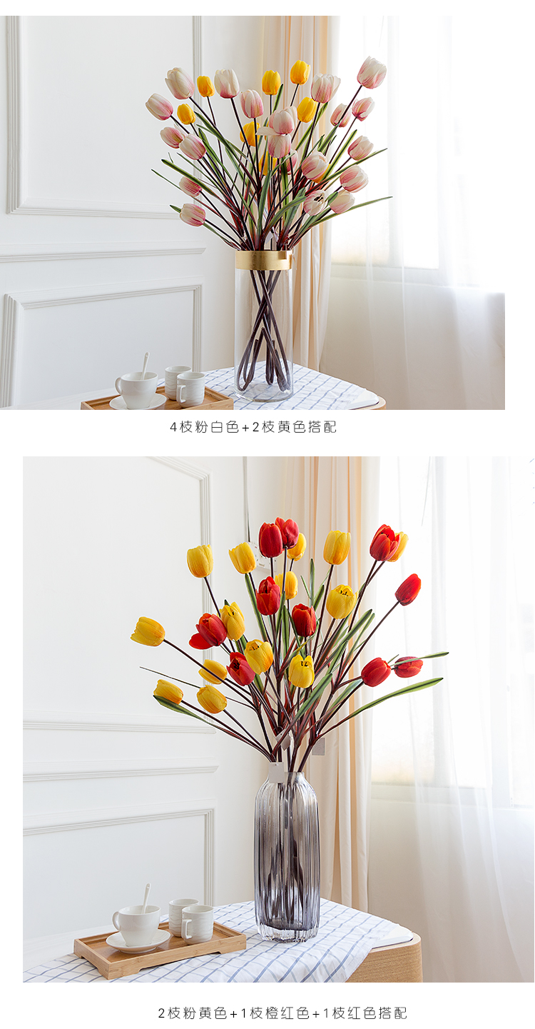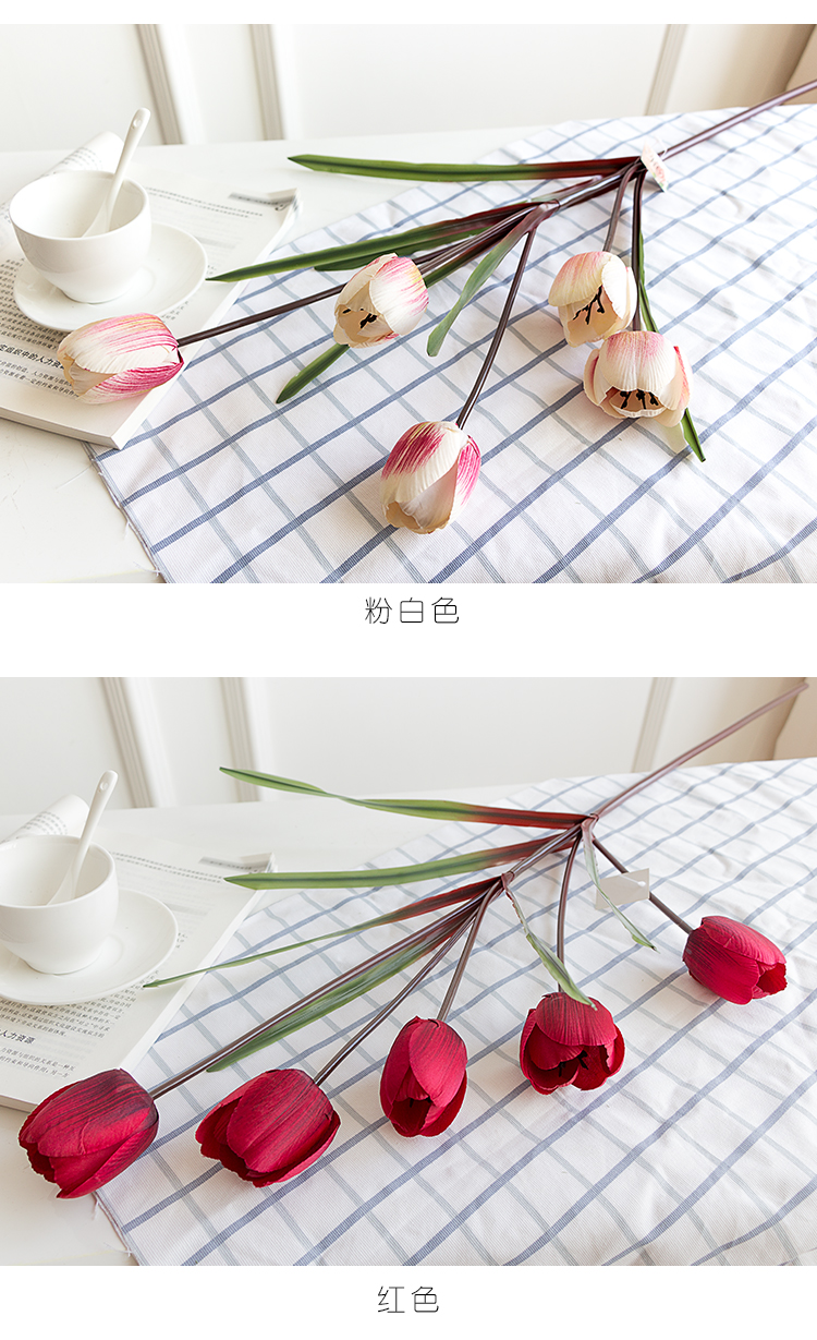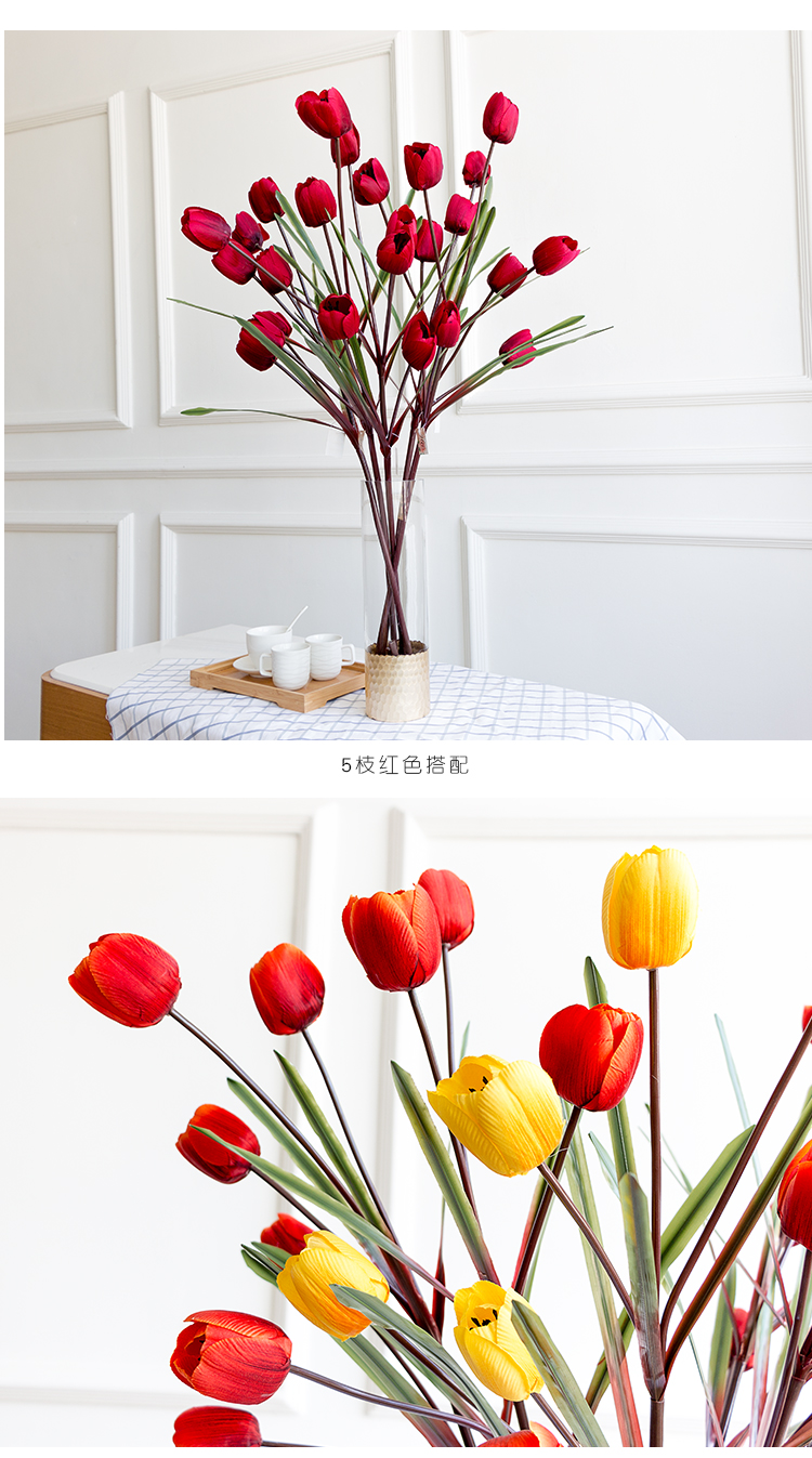 紅色郁金香仿真花客廳假花絹花塑料花客廳落地裝飾花卉餐桌擺設花藝