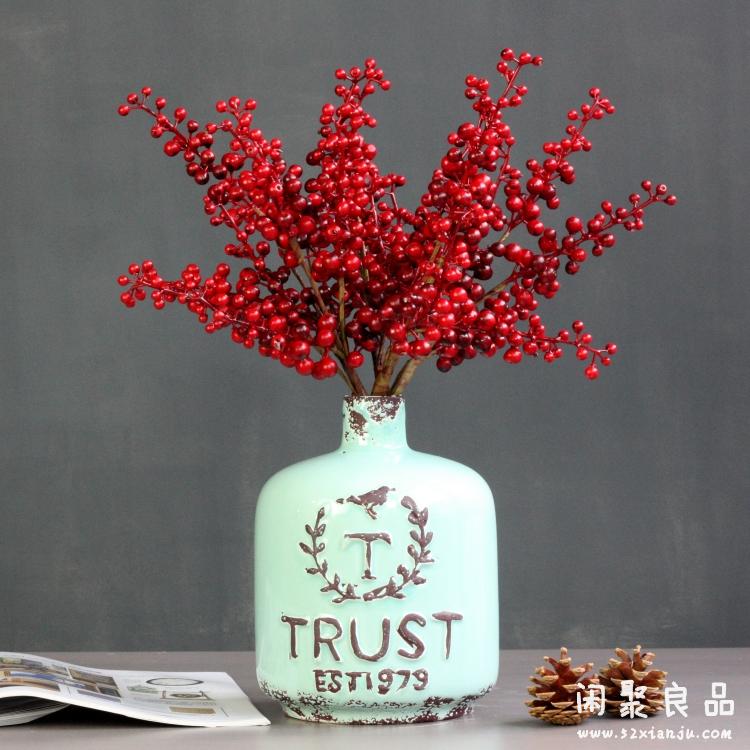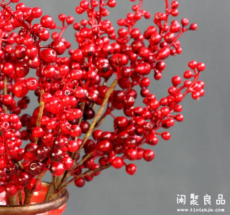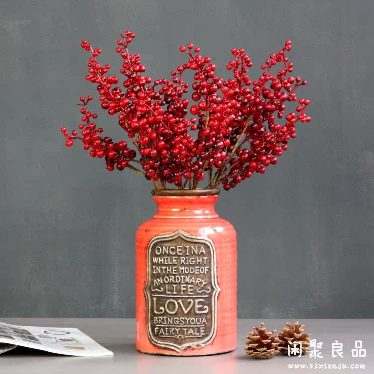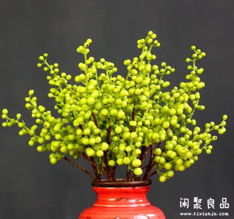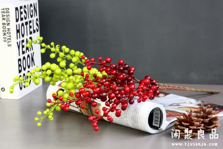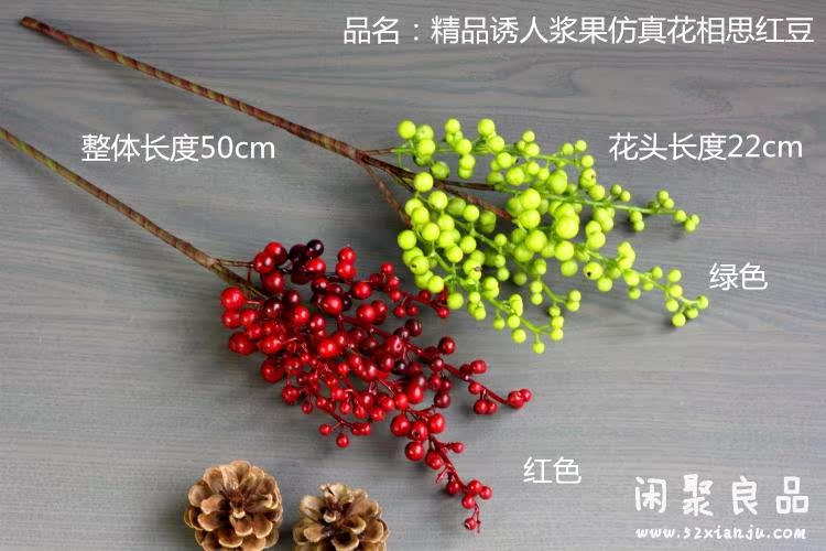 紅色一支精品高檔仿真花藝 誘人漿果相思紅豆發財果 紅色/綠色 花瓶插花擺
